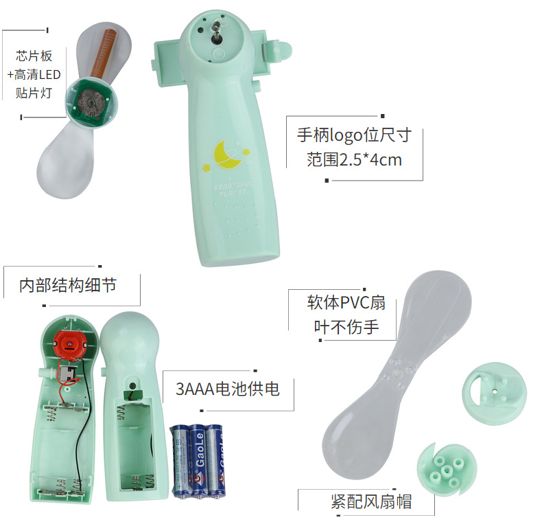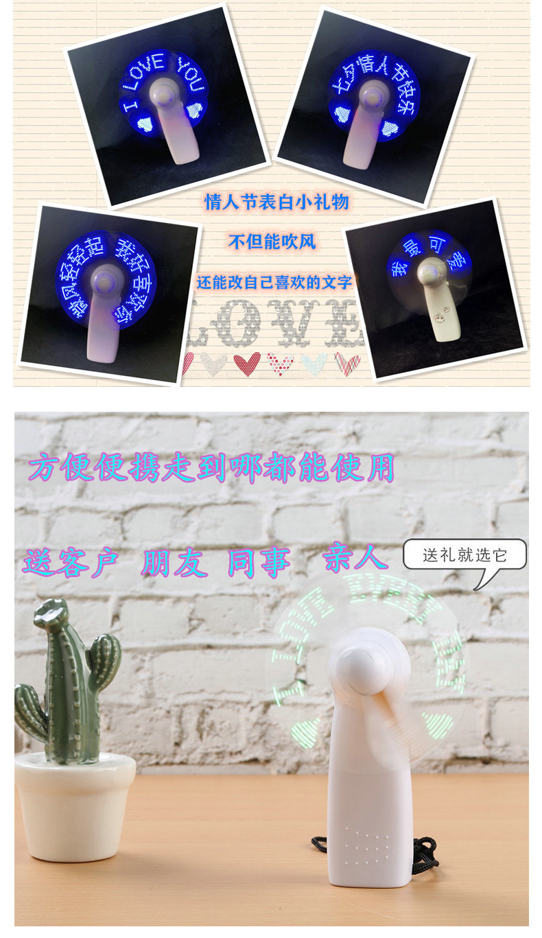 Заводская поставка летнего подарка Логотип предприятия небольшой Электрический вентилятор Мини-светодиод со светящимся фиксированным вентилятором со вспышкой