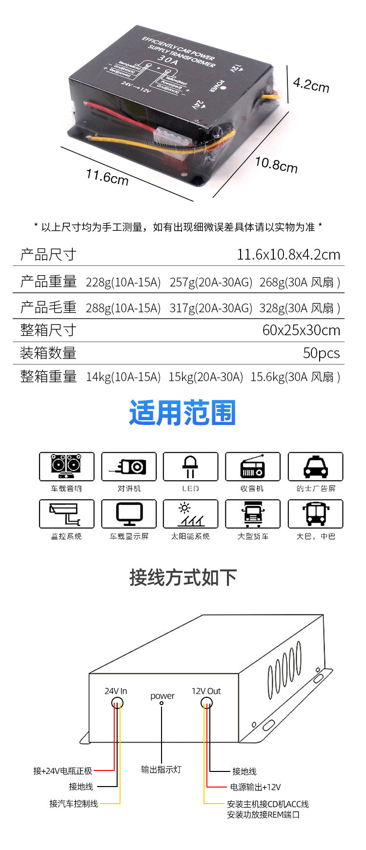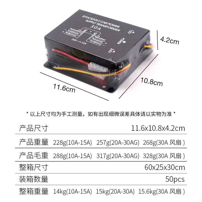 Завод прямой 10A/15A/20A/30A Преобразователь мощности автомобиля 24V в 12V редуктор напряжения для больших грузовиков