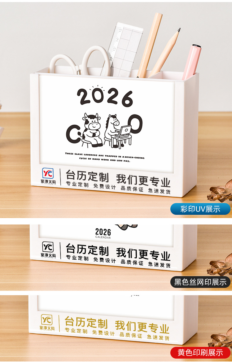 2024 Тайвань календарь пластиковый офис хранения ручка держатель настольный календарь Реклама Печать предприятие подарок для печати логотип