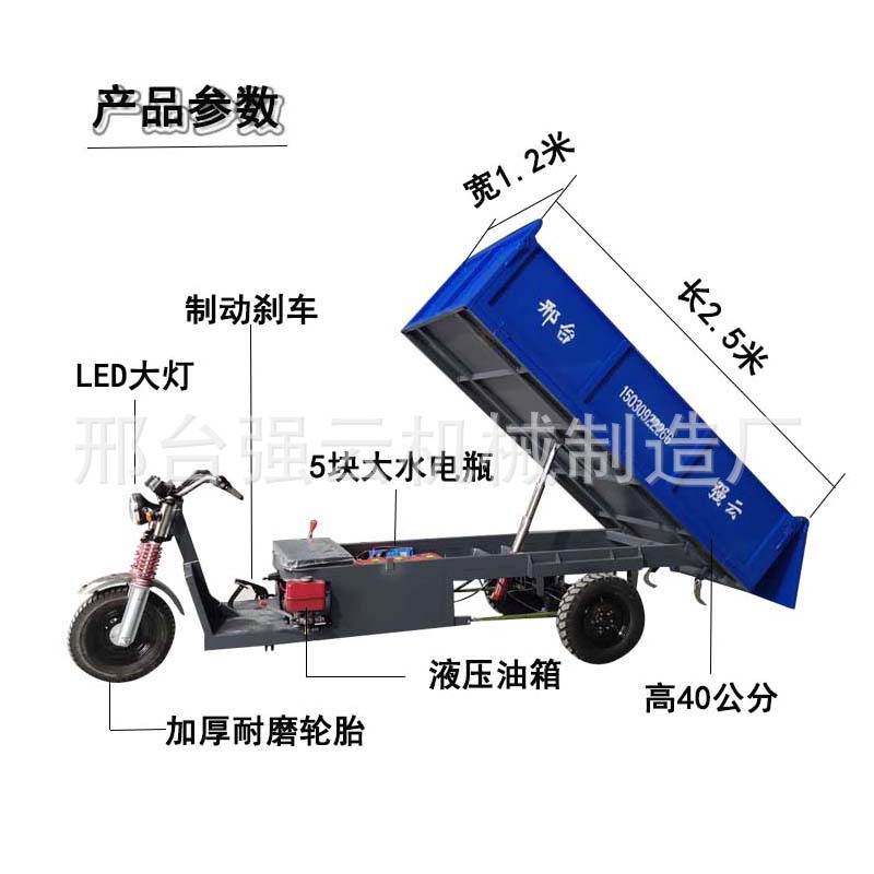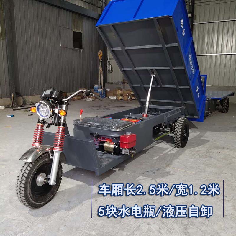 Инженерный Электрический трехколесный велосипед на строительной площадке, гидравлический саморазгрузочный ковш, удлиненный Электрический сельскохозяйственный автомобиль, погрузочно-разгрузочные работы