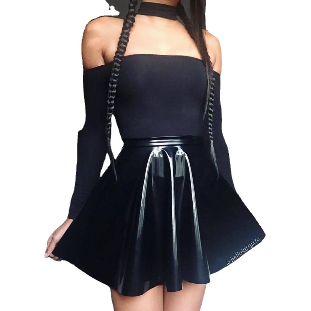 WishPU кожаная Глянцевая темная стильная плиссированная юбка мини юбка для девочек FM1931
