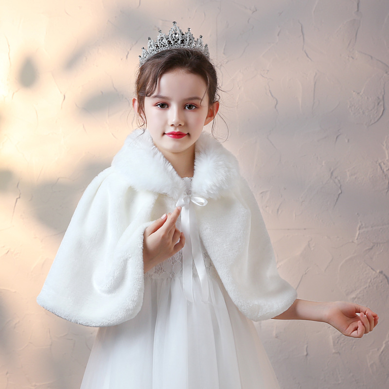 Детская накидка меховая шаль маленькая накидка осенне-зимнее представление из девочки платье девушки цветка теплое белое оптом