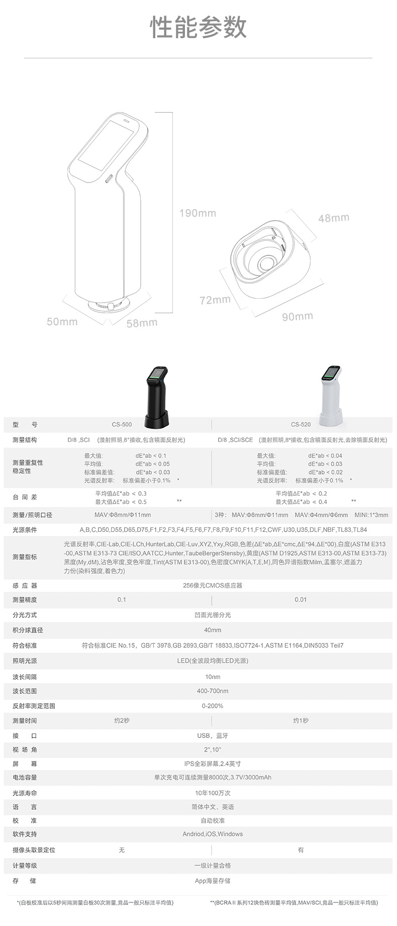 Цветной спектральный спектрометр цветодифференциал CS-500/520 мультикалиберных переключаются для краски пластиковый цвет