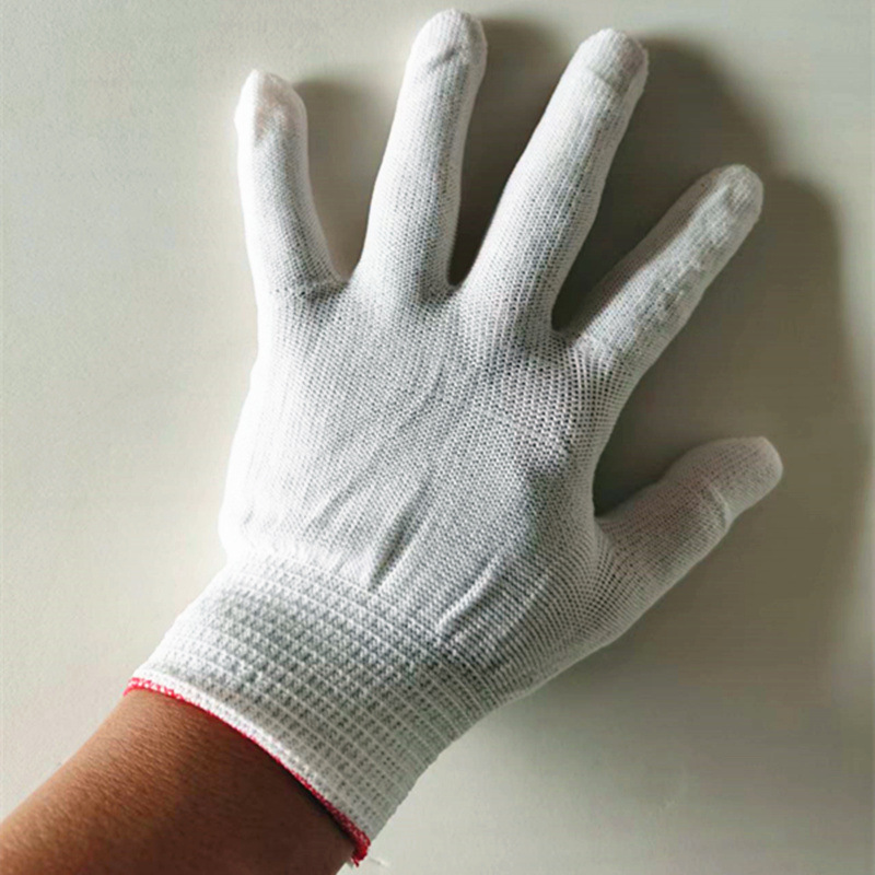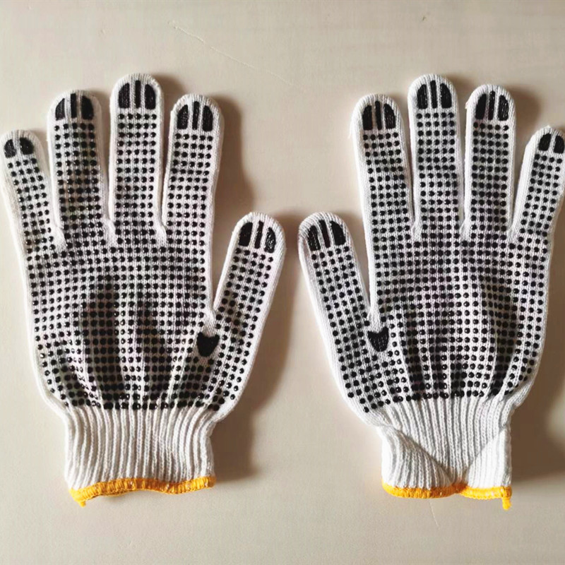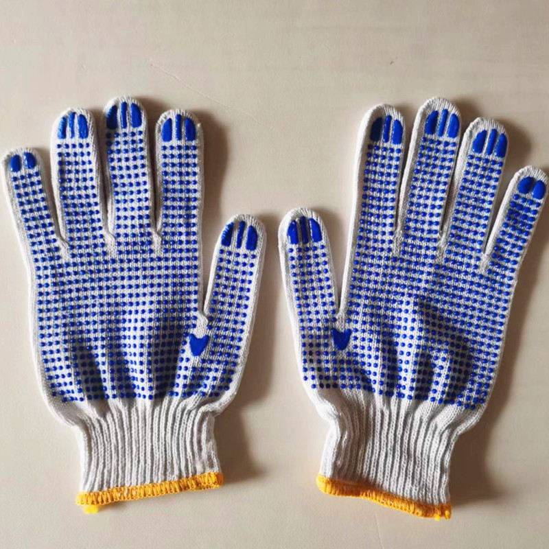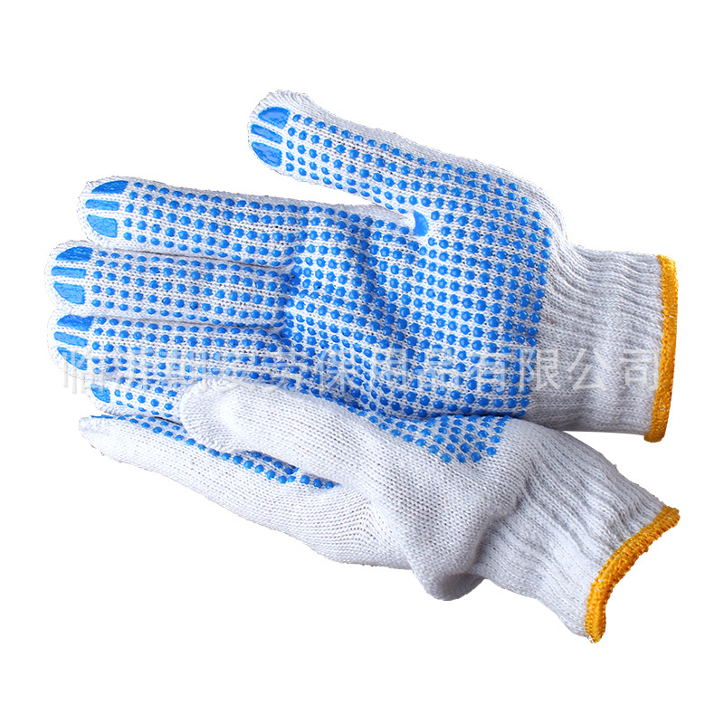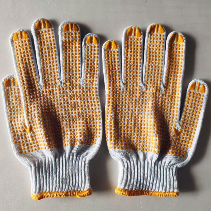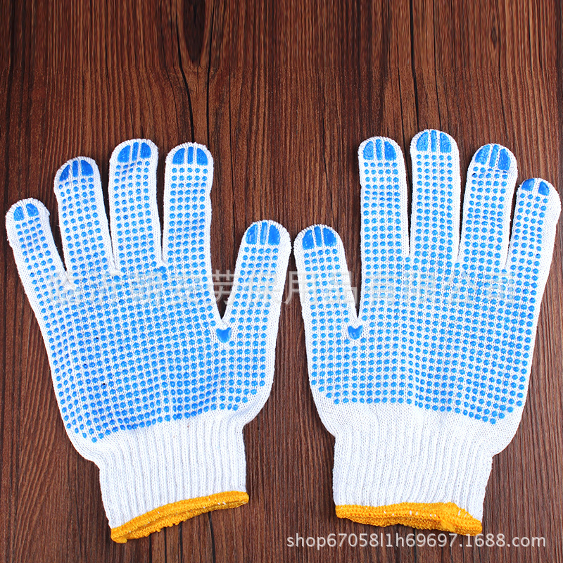 Белый палец Охрана труда хлопчатобумажной пряжи дозирующие перчатки клей хлопчатобумажные нити Перчатки Нескользящие пластиковые перчатки из бисера 600 г оптом