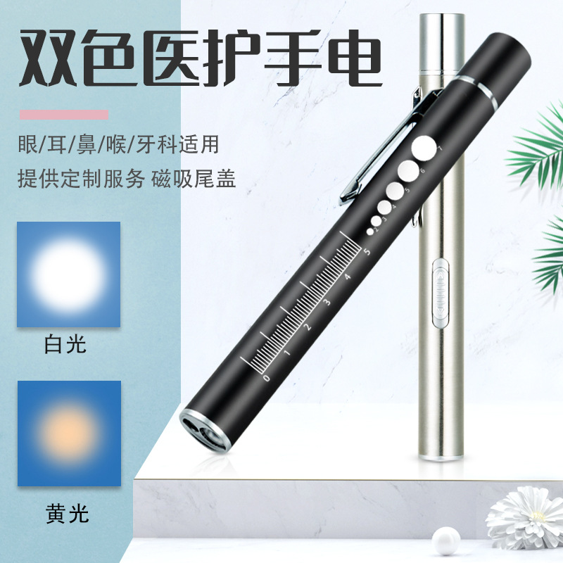 Перезаряжаемый бытовой фонарик двойной источник света Светодиодный свет ручки зрачка желтый свет белый свет для осмотра полости рта прямые поставки с завода