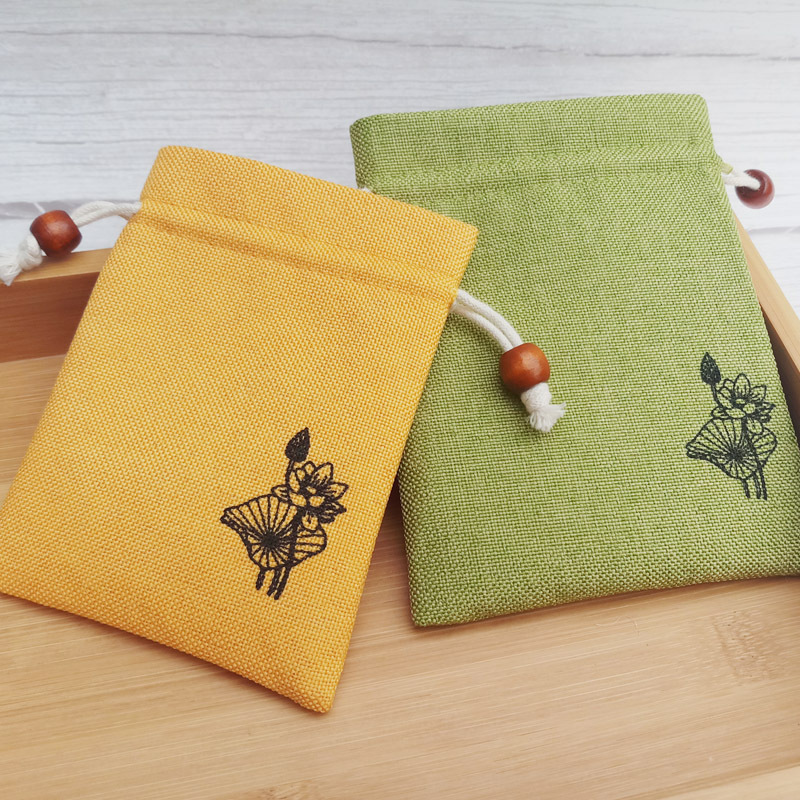 Льняной карман с лотосом на шнурке