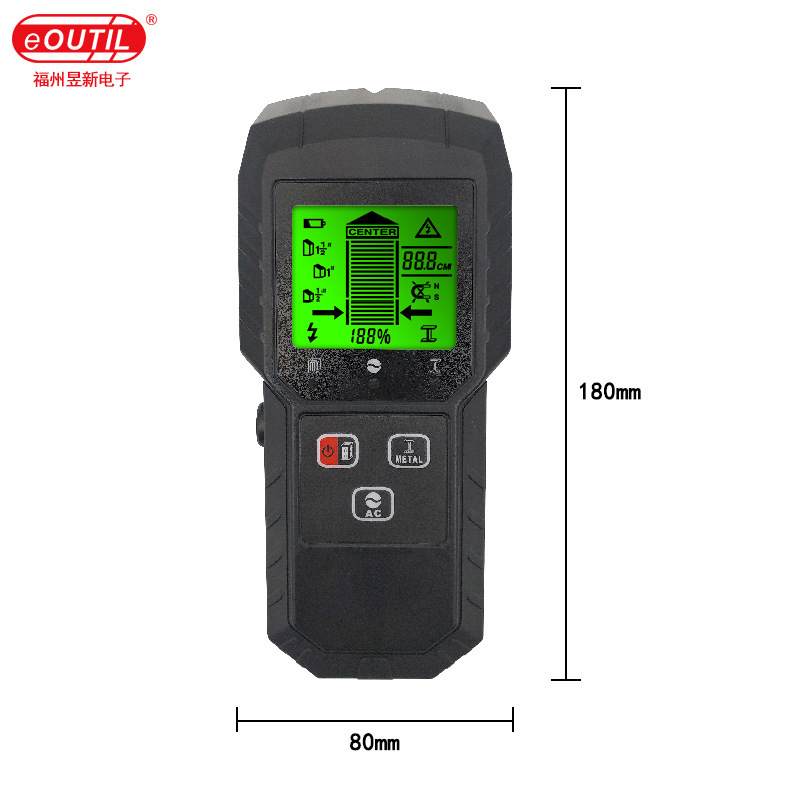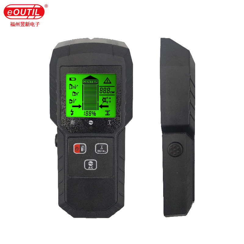 木头梗中心探测仪,带探测金属和电压功能 用于探测木板、石膏板类材质墙壁内木梗中心位置,金属位置及带电电线, 区分墙体内磁性和非磁性金属。 |