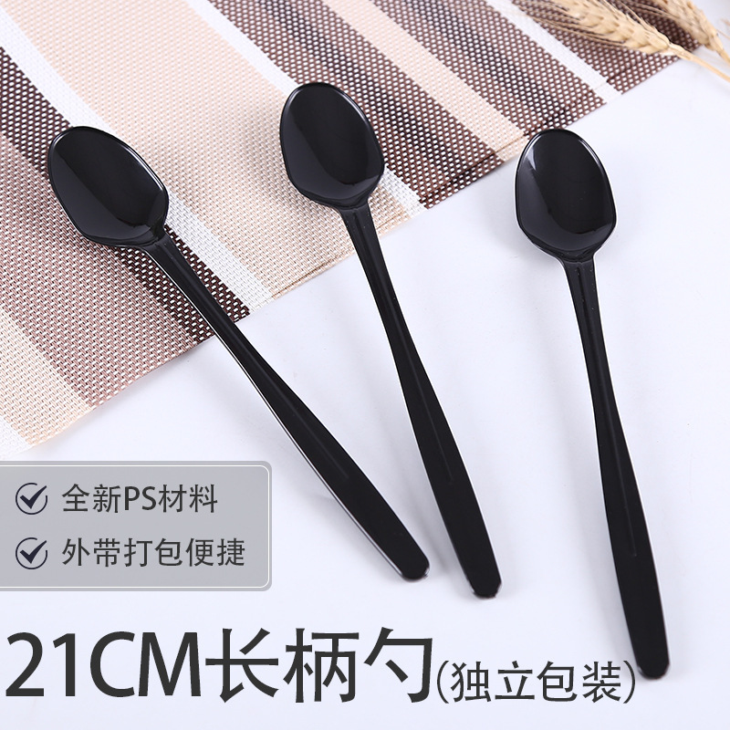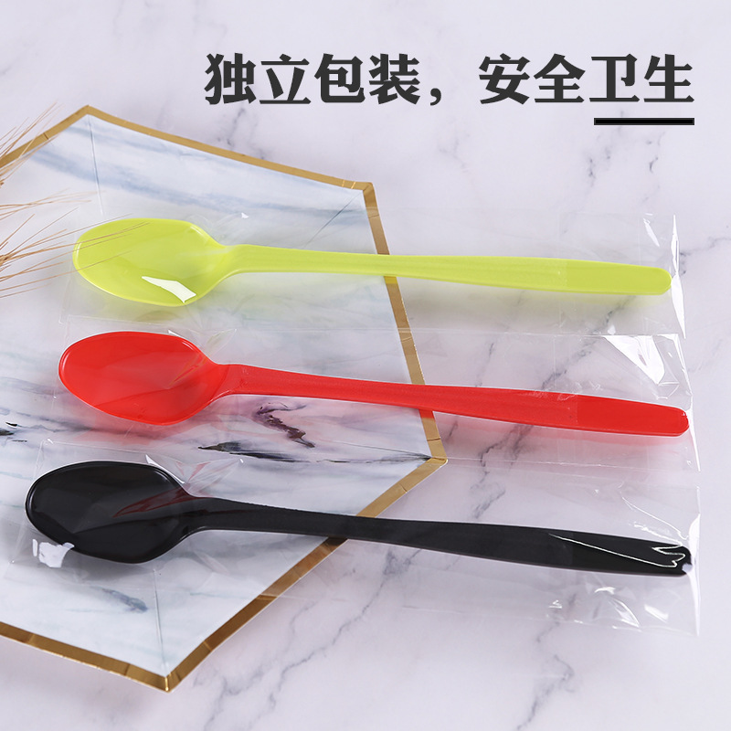 Длинные ложки для кафе, одноразовые пластиковые ложки с длинной ручкой для фруктового желе, разноцветные ложки, ложки для размешивания кофе, ложки для смузи.