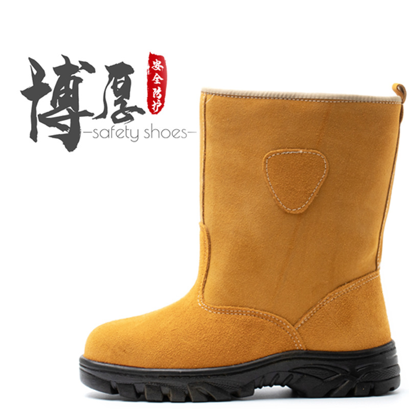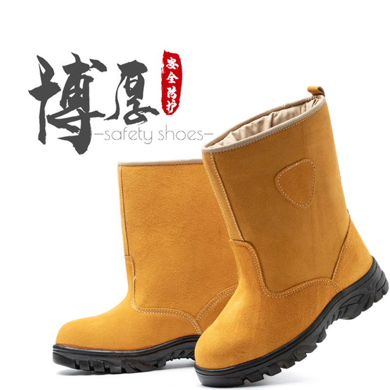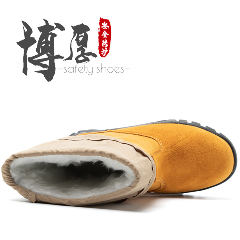 Оптовая зимняя защитная обувь на флисовой подкладке, замшевые ботинки с высоким верхом, стальная сумка с защитой от ударов, защита от проколов, Рабочая защитная обувь