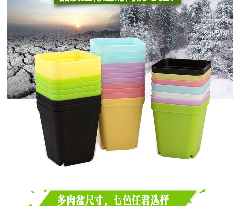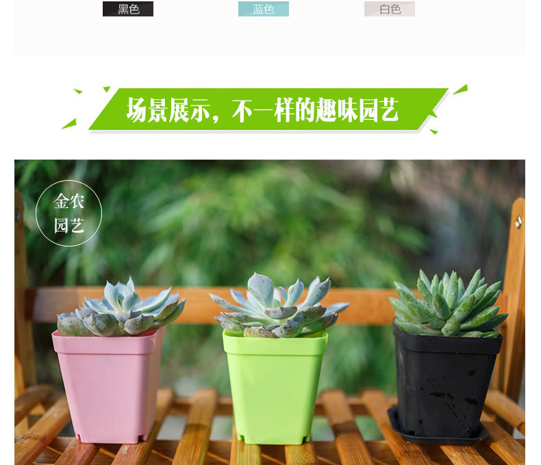 Маленький черный красочный пластиковый цветочный горшок Маленькая квадратная Цветочная тарелка мясистый горшок для растений Цветная головка Дышащий прочный устойчивый квадратный горшок