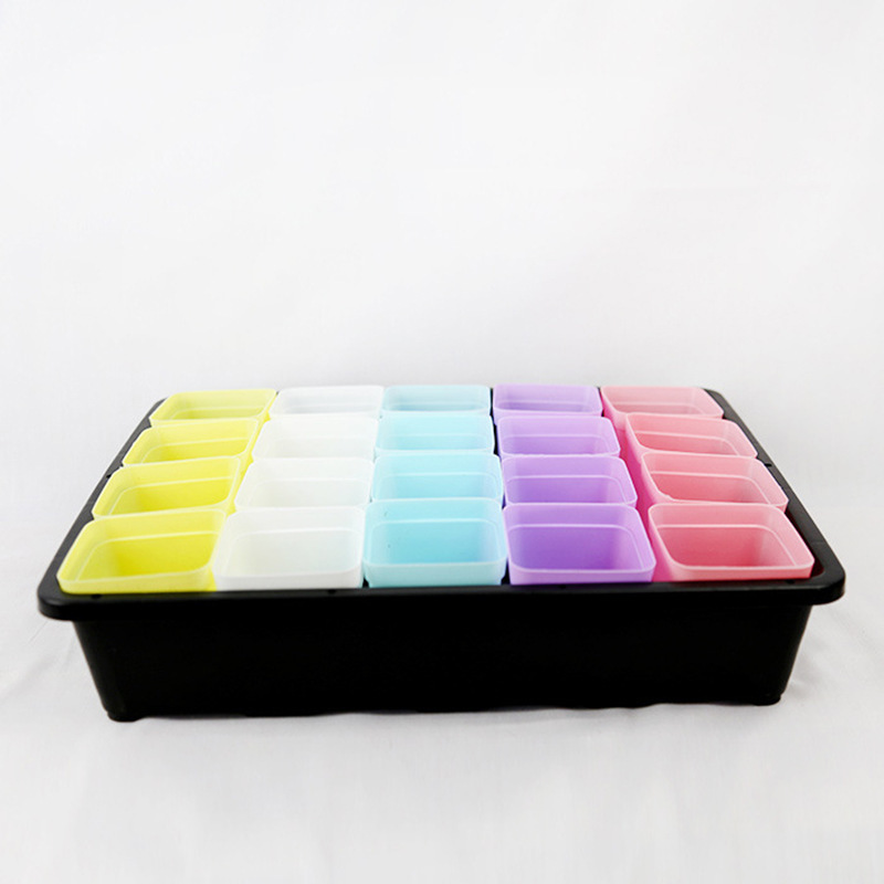 关于育苗盒:育苗盒可以放20个七彩盆,尺寸37*30*7.5厘米。量大联系客服,可优惠。