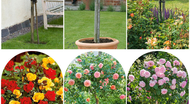 Привитый пень Роза двор Высокий полюс Дерево-образный Дерево большой цветок Двухцветная Виноградная лоза Роуз Лучжоу-вкус двор Леденец на палочке