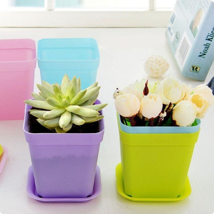 Цветное утолщенное мясистое растение Пластиковый цветочный горшок Высококачественный маленький мясистый горшок Маленький квадратный горшок Лоток Цвет Квадратный Размер Черный квадрат