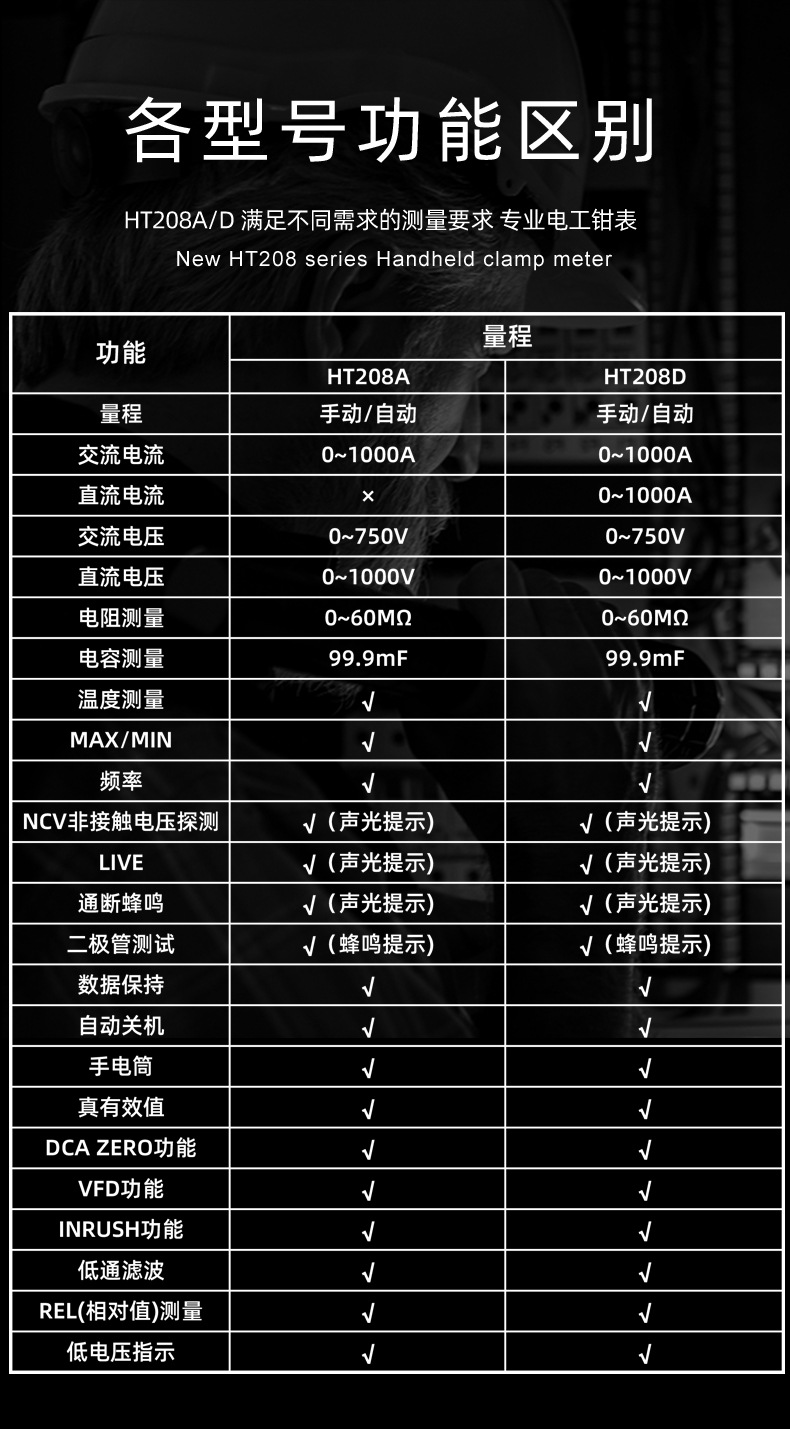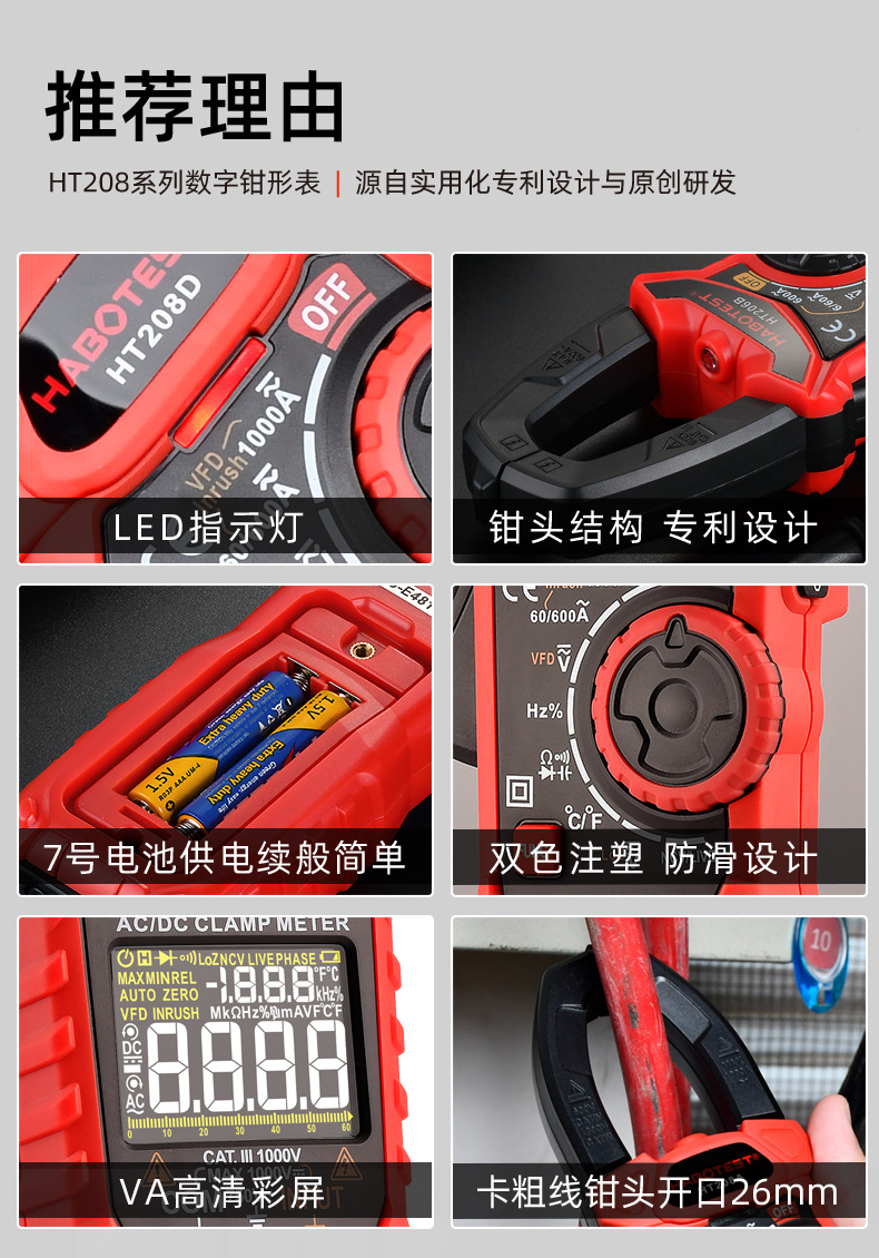 Huabo Factory Store HT208A AC Digital 1000A Токоизмерительные клещи Многофункциональный цифровой мультиметр с защитой от ожогов