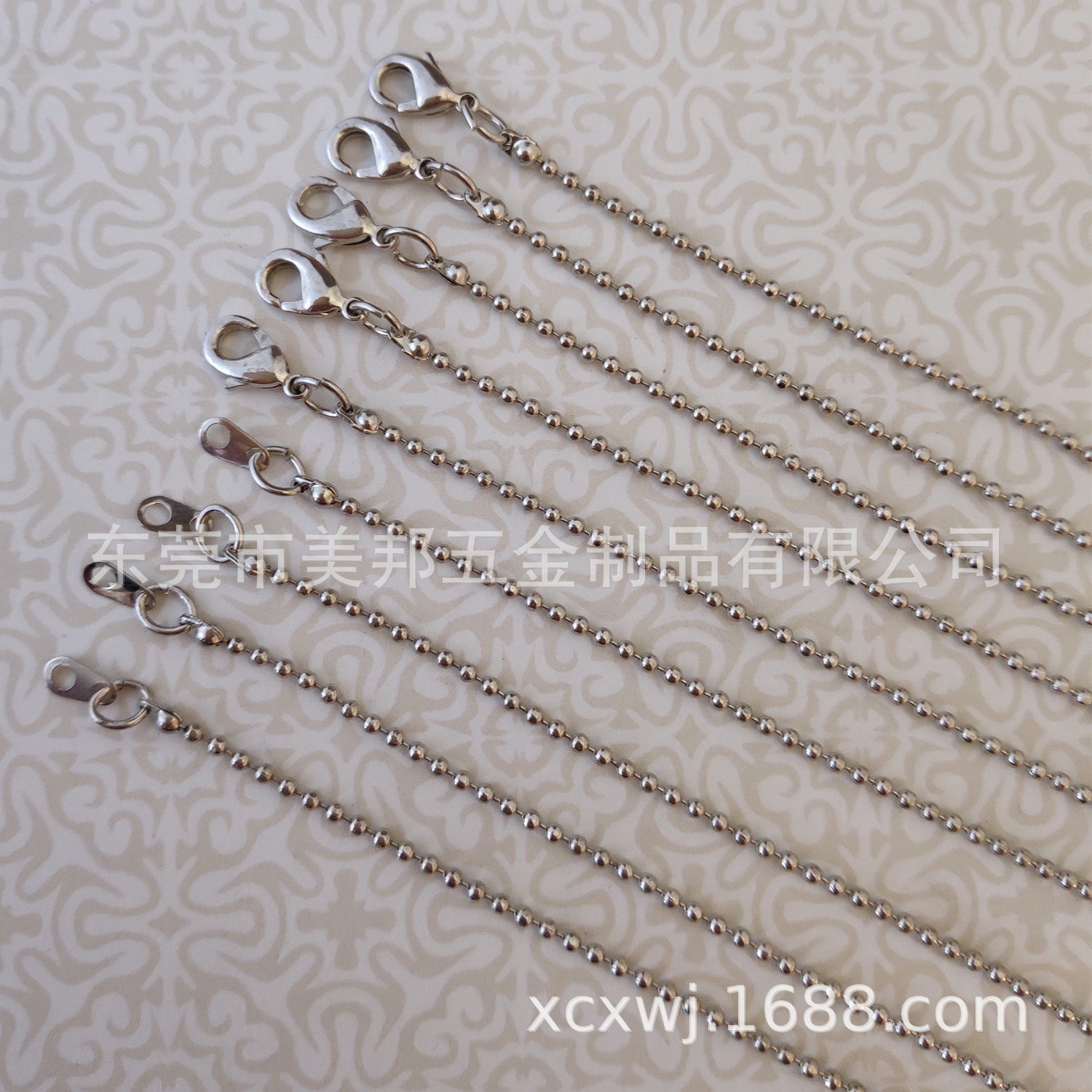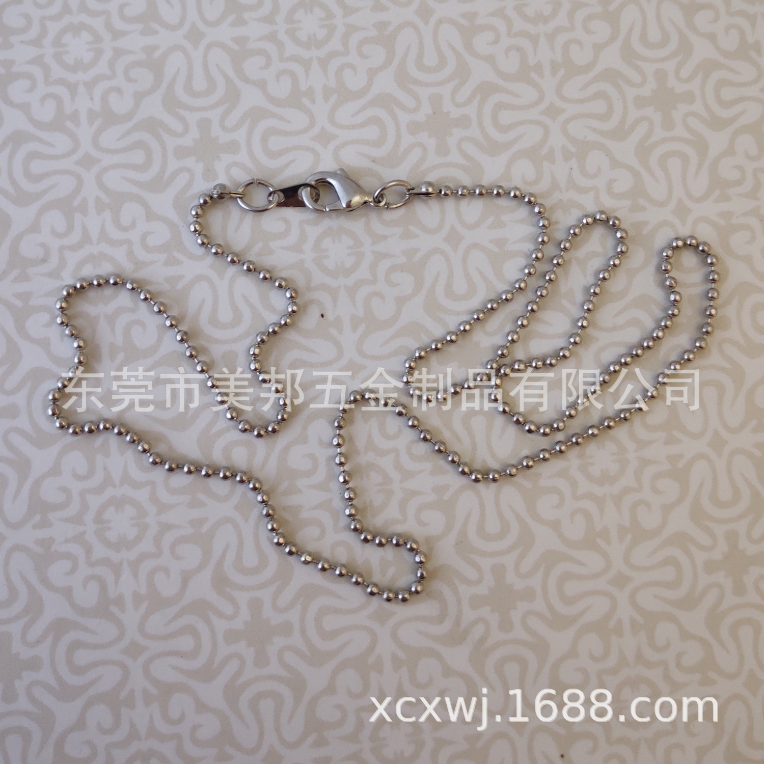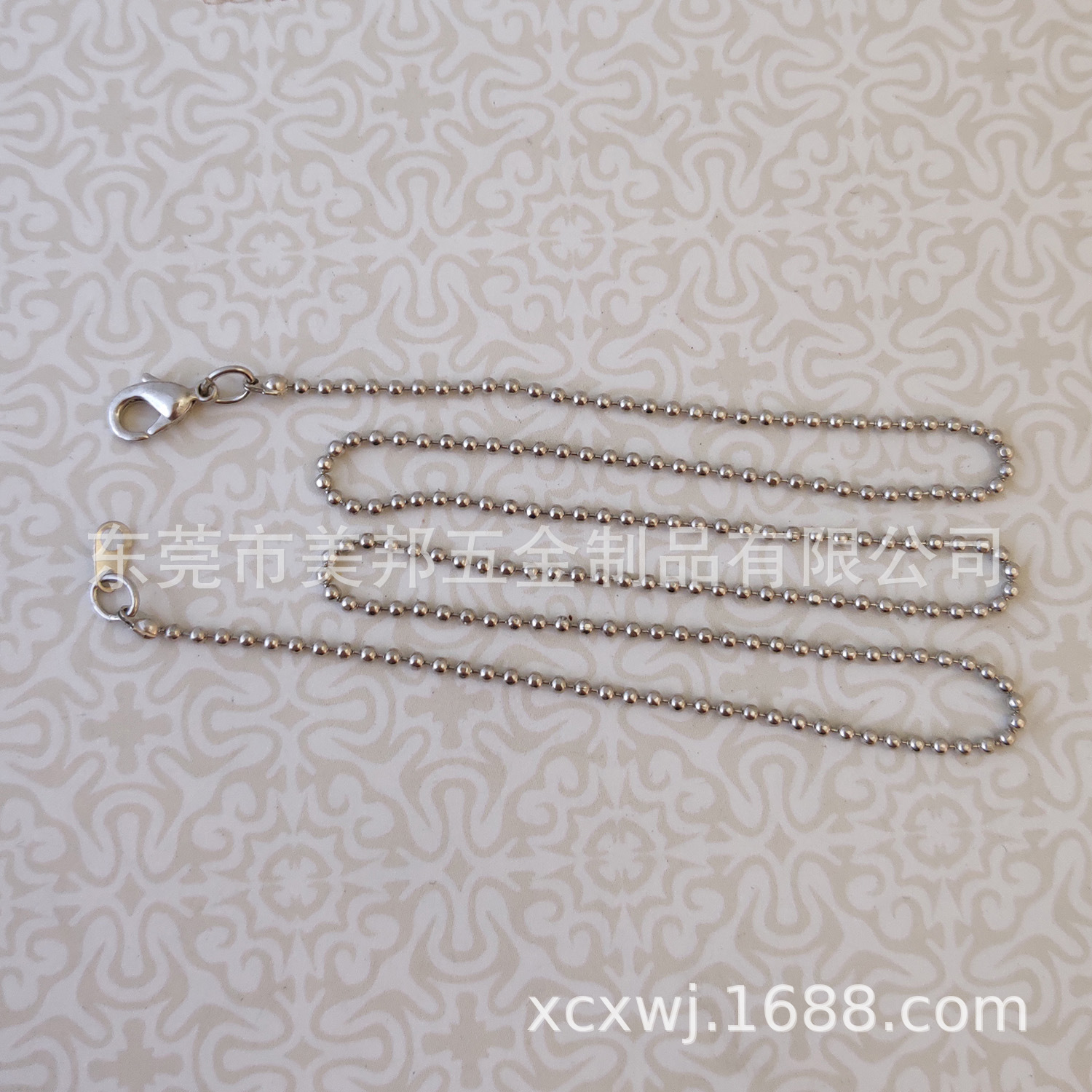 金属项链,全铜材料,电镀白K,直径1.5mm切面珠链,韩国铜质龙虾扣,总长72cm。库存数量支持现货,支持不同规格的订制加工。