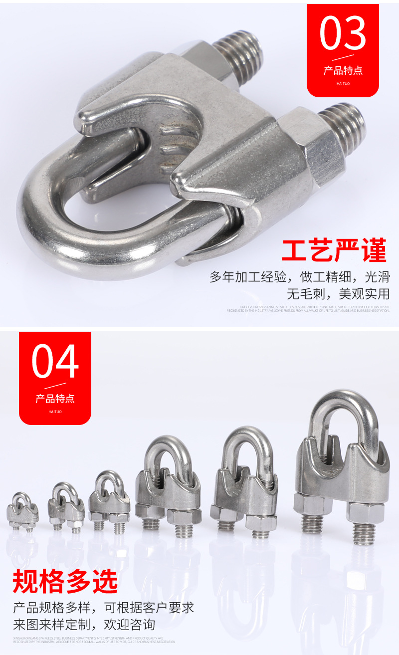 Зажим для троса из нержавеющей стали 304, U-образный зажим-натяжитель, производитель, на заказ, спиральный