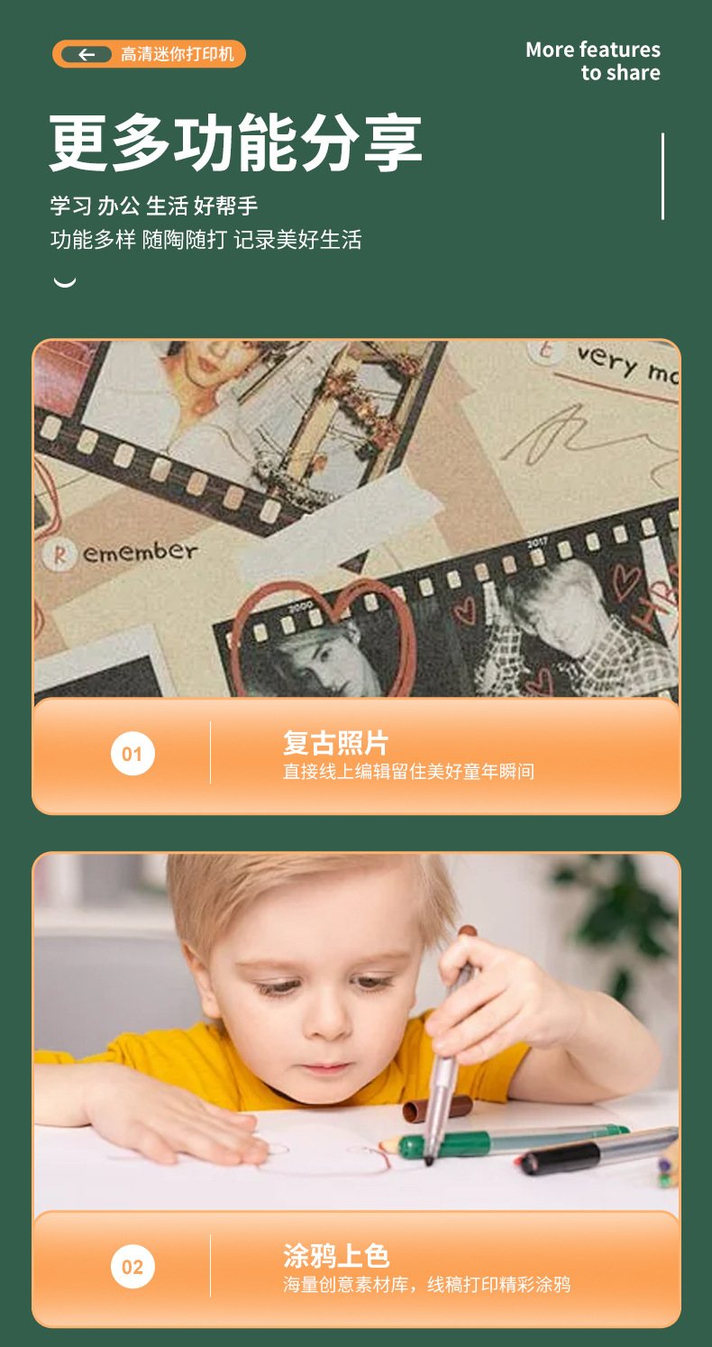 连接方式:蓝牙无线 无墨黑白打印