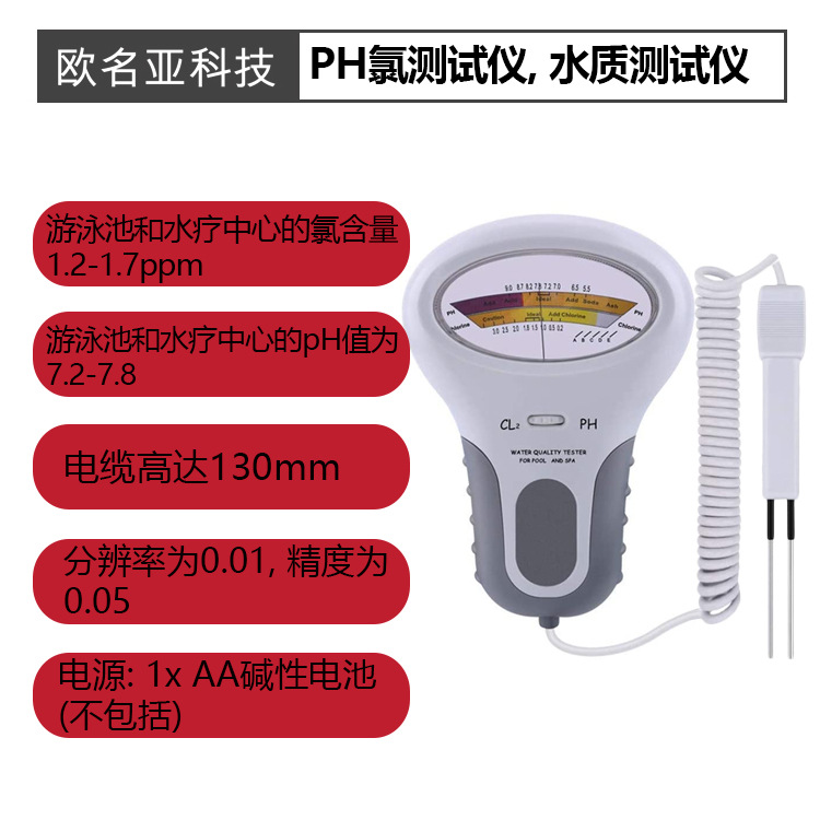 -An electronic tester for testing the pH and chlorine (Cl2) level in the water, used for routine monitoring of the pH and chlorine levels of swimming pools, spas and various water sources.