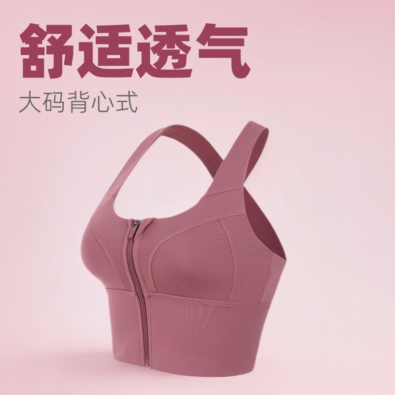 Жилет больших размеров Противоударный спортивный бюстгальтер Женский летний пухлый для девочек Тренажерный зал Собравшись для бега Красота на спине Молния Нижнее белье для йоги
