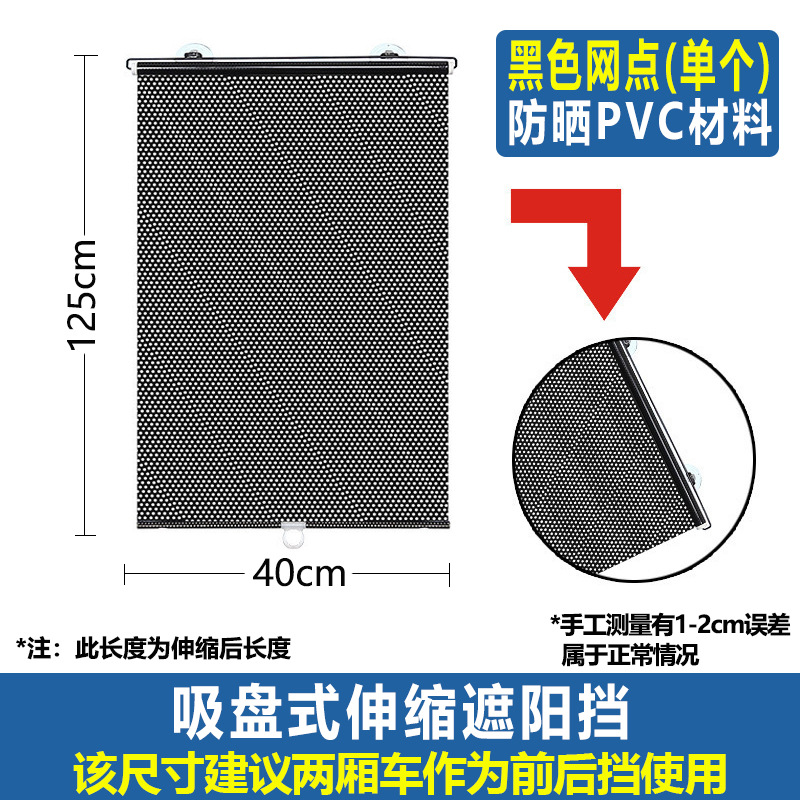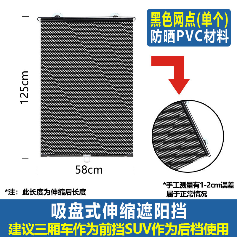 这款用于汽车玻璃的隔热帘适用于各款车型,可帮你的爱车隔离90%以上的阳光;安装非常快捷,只要你停车时轻轻拉起拉环扣在吸盘上即可,两秒时间,清凉一夏!还有自动收卷功能,不伤车体,美观实用,价格便宜,是你夏天驾车出门不可少的用品!