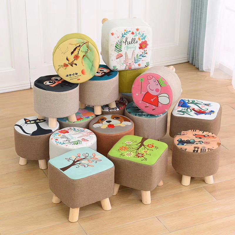 Мультфильм сплошной цвет обуви Пеленальный табурет ткань подарок табурет из цельного дерева квадратный табурет круглый табурет грибной табурет печатная деятельность небольшой табурет оптом