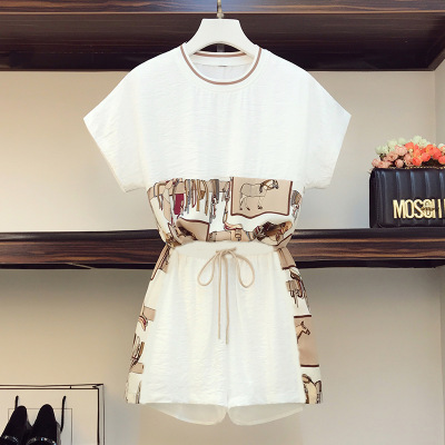 Женский Повседневный Спортивный костюм больших размеров 2023, Летний Новый Плюс Толстая девушка, свободный комплект из двух предметов для похудения