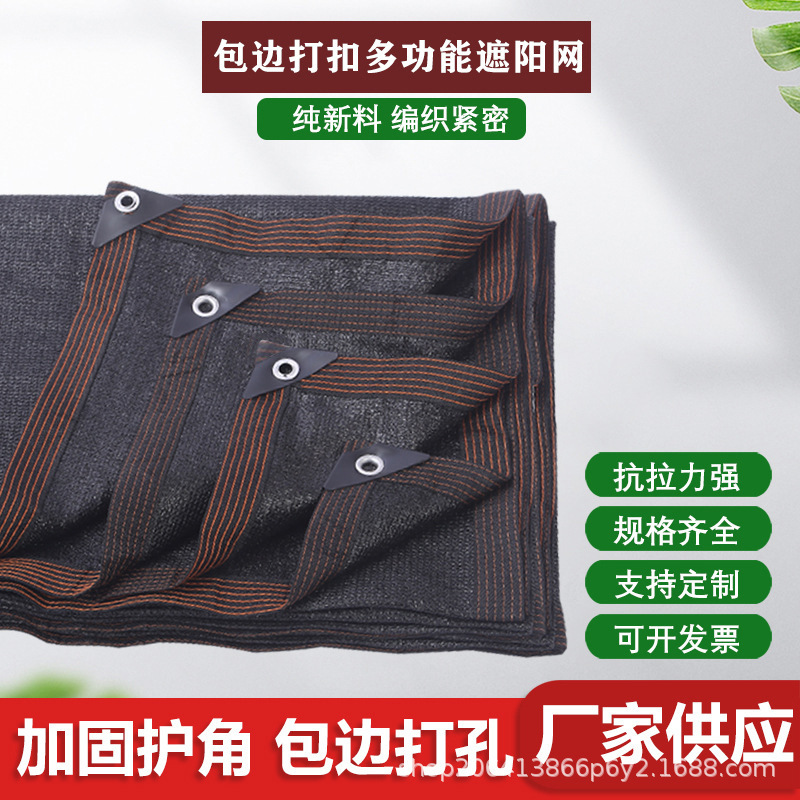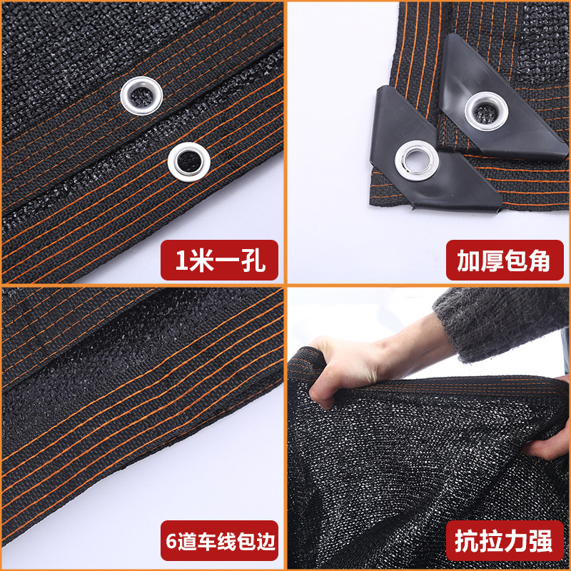 Сетка для затенения с черными краями, перфорированная, утолщенная и уплотненная, для затенения цветов во дворе и защиты от солнца, черная затеняющая сетка
