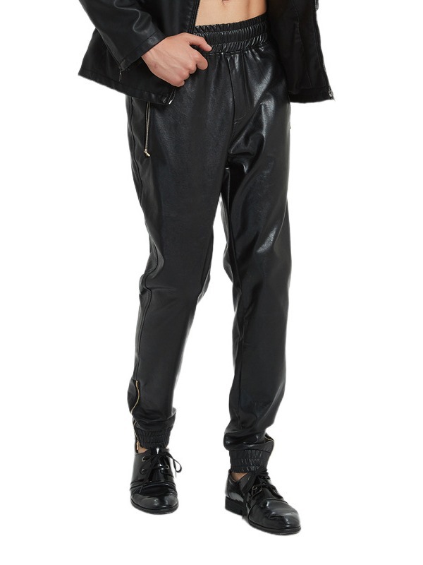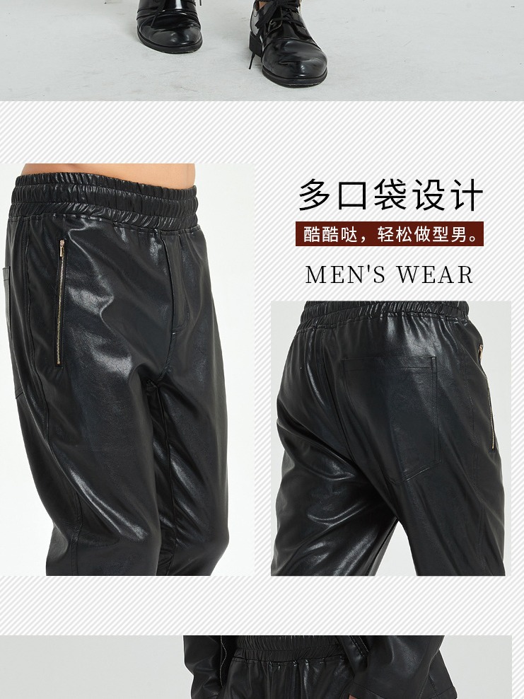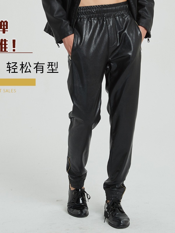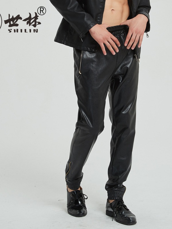 2025 Shilin повседневные кожаные брюки-шаровары мужские с эластичной резинкой на талии мотоциклетные хип-хоп модные мужские персонализированные повседневные брюки оптом