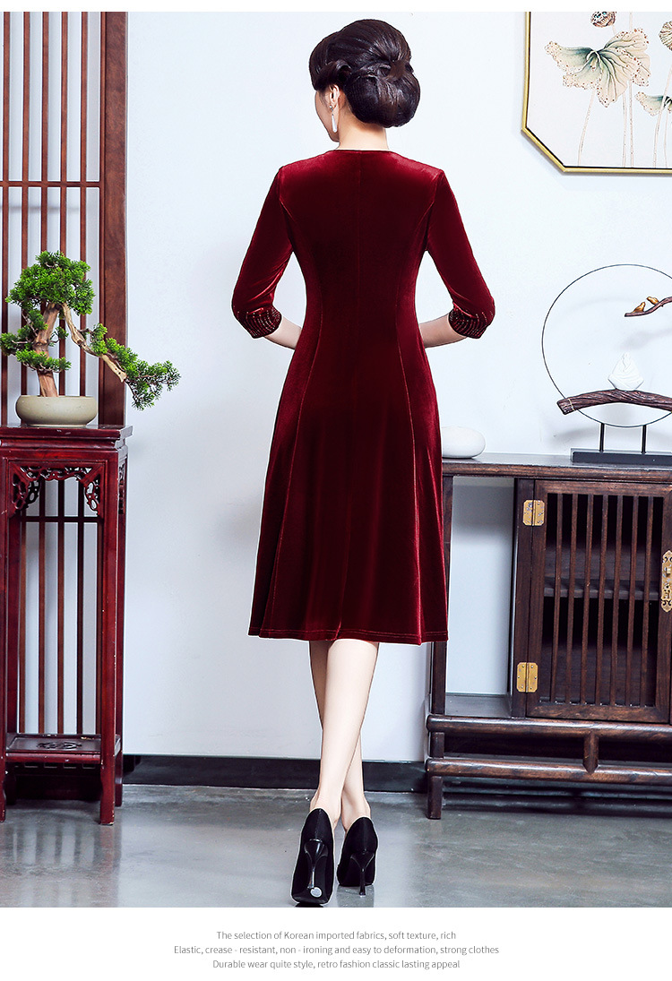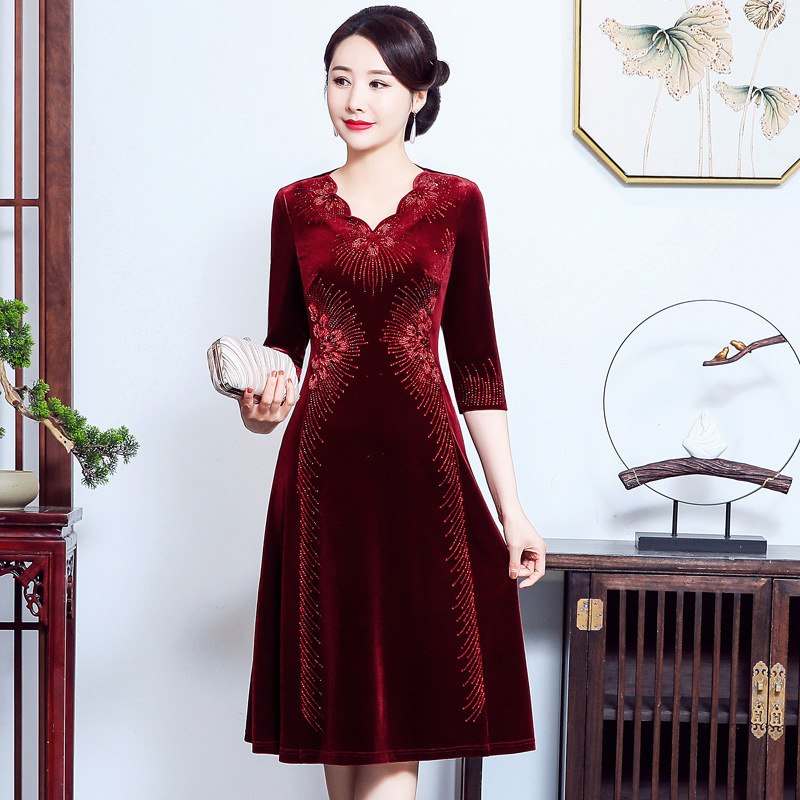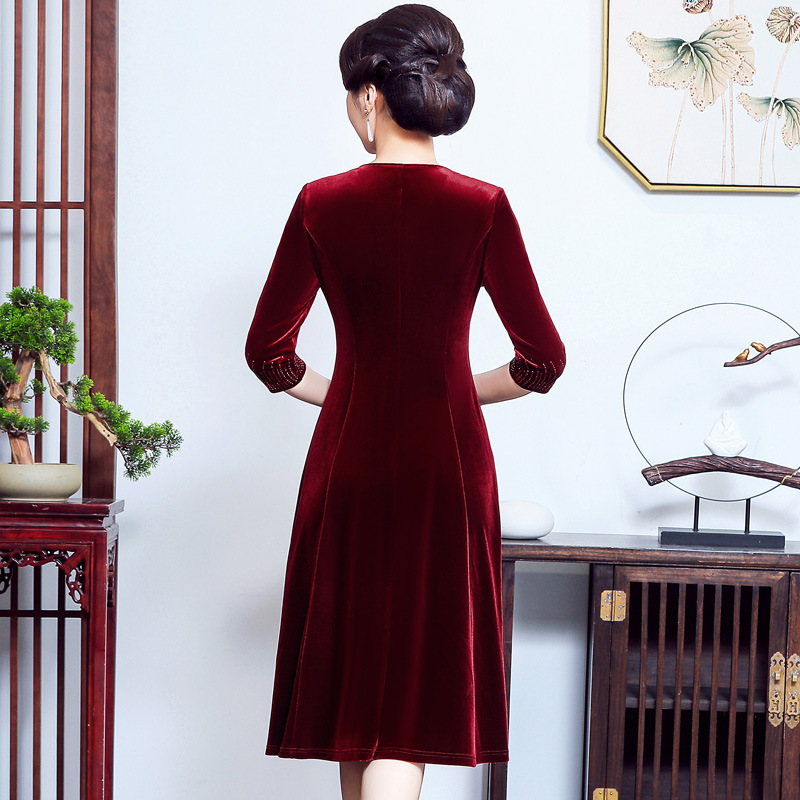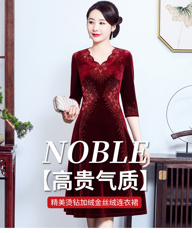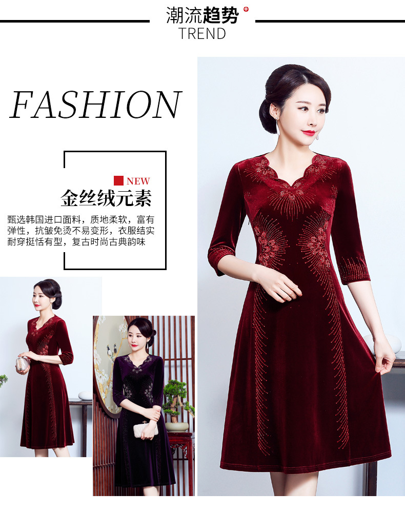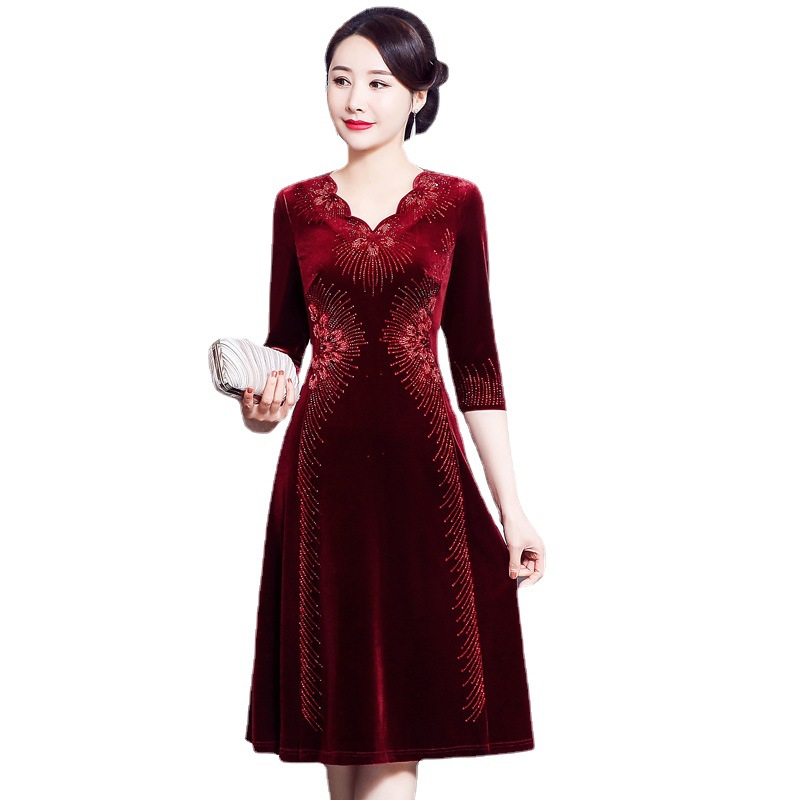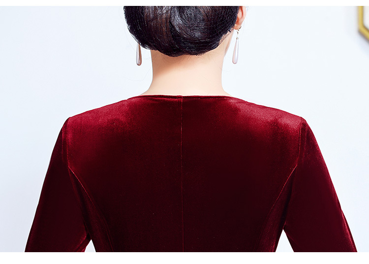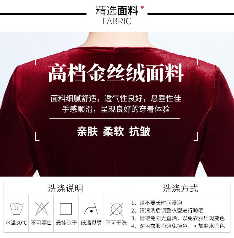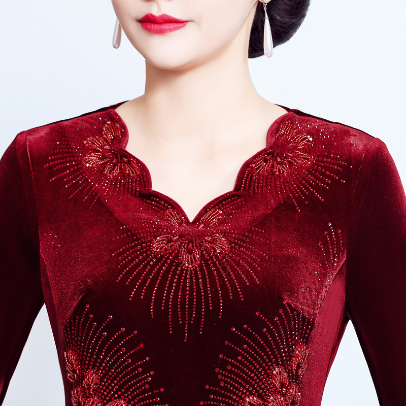 Вау, сплошное платье с золотым бархатом, теплым корейским V-образным вырезом с толстым верхом с длинными рукавами
