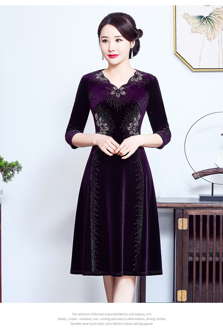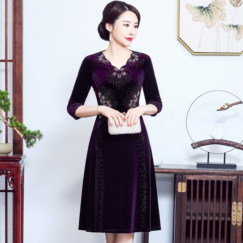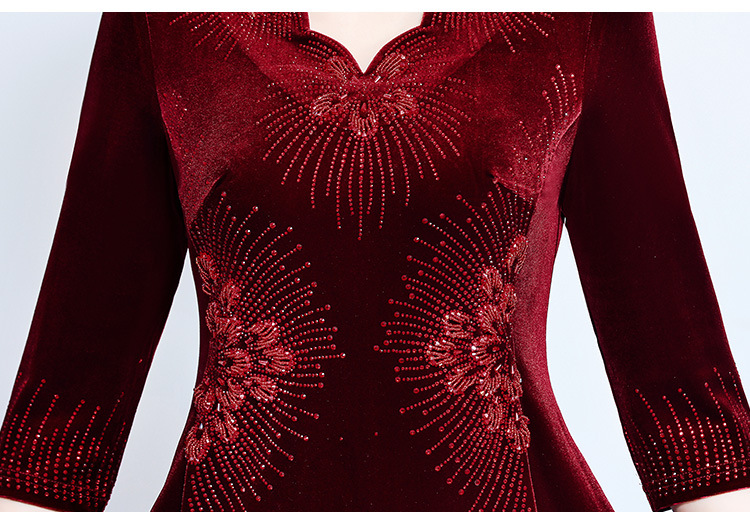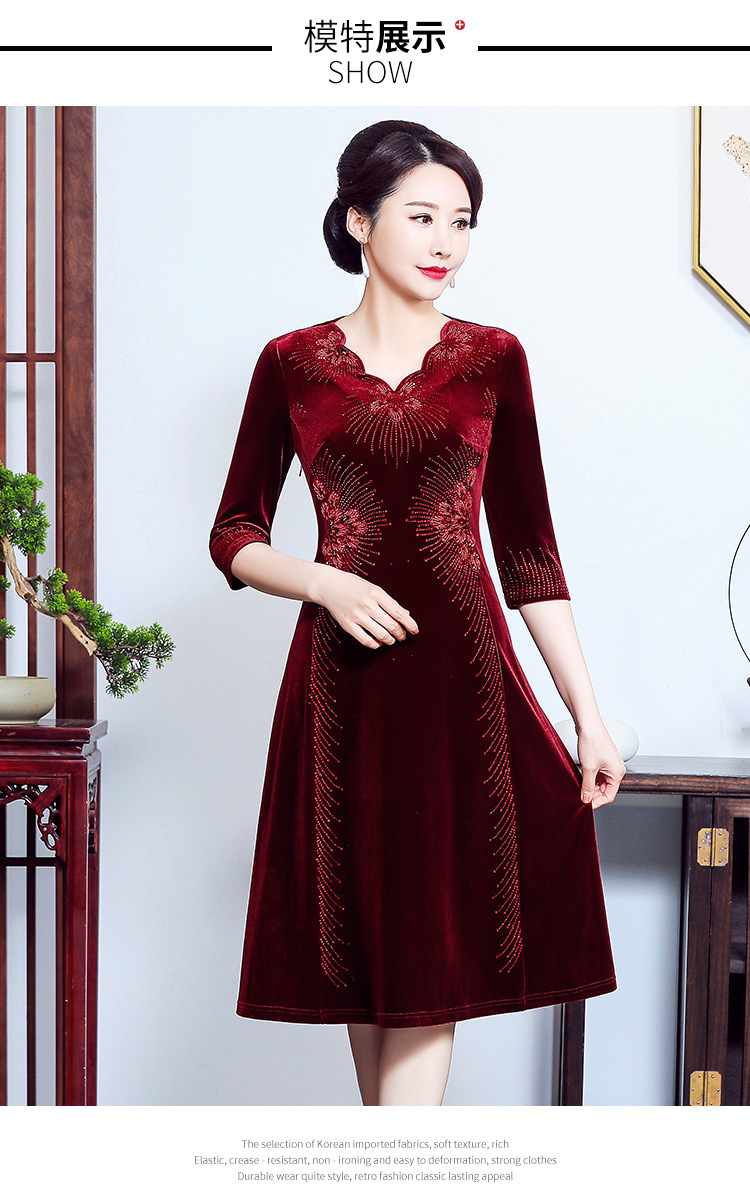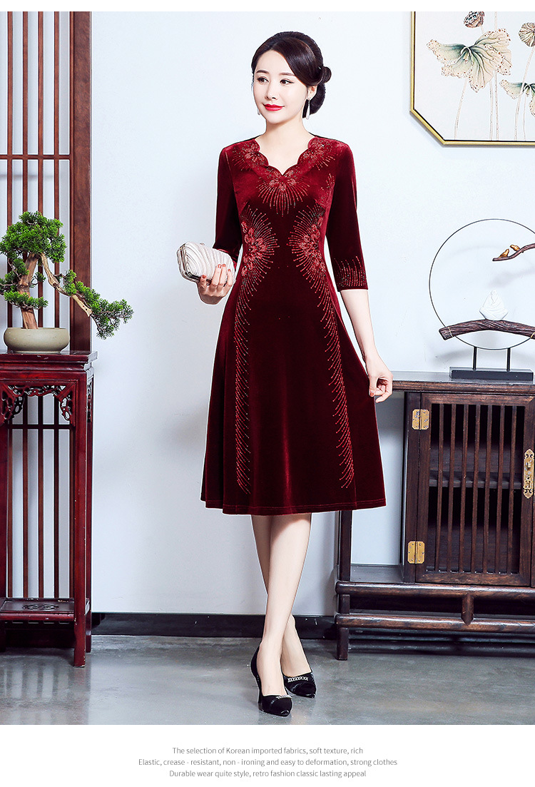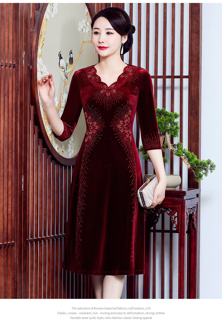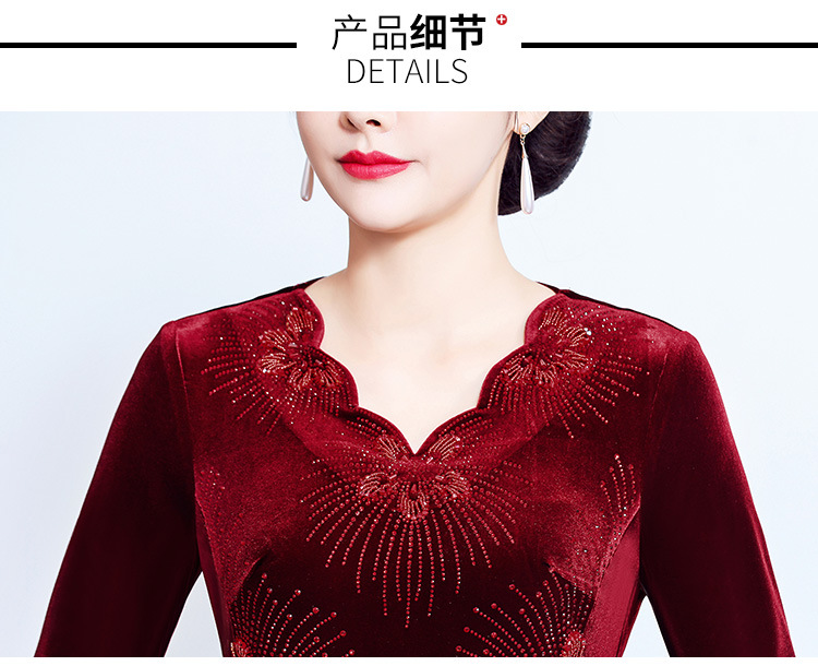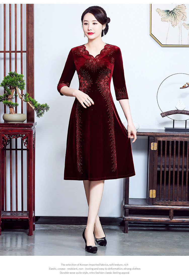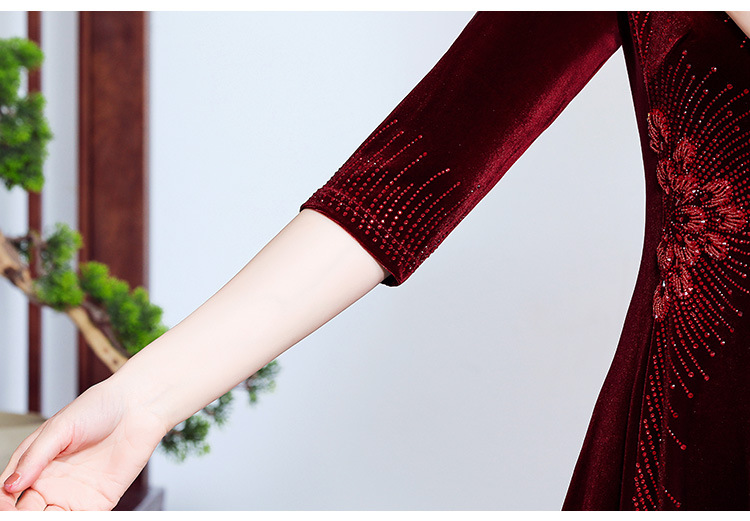 Вау, сплошное платье с золотым бархатом, теплым корейским V-образным вырезом с толстым верхом с длинными рукавами