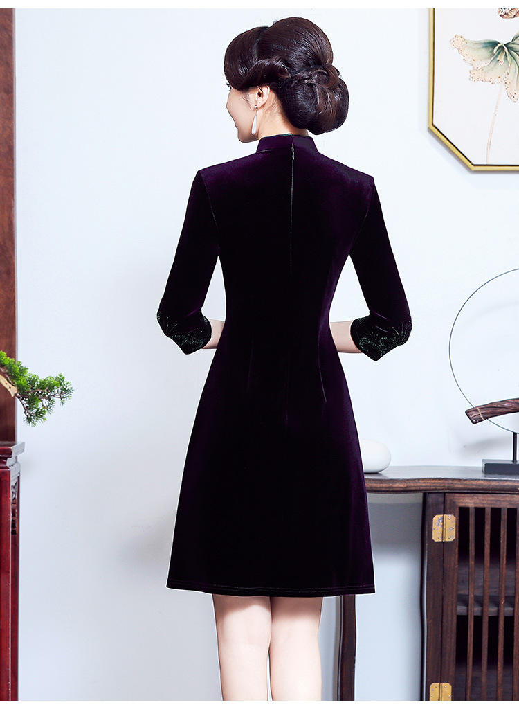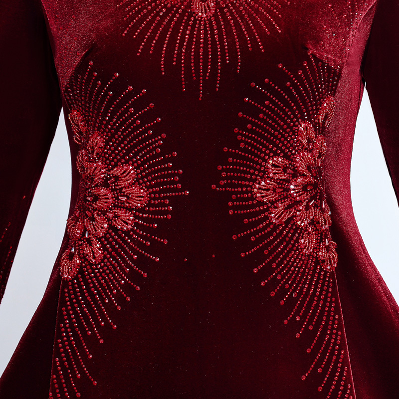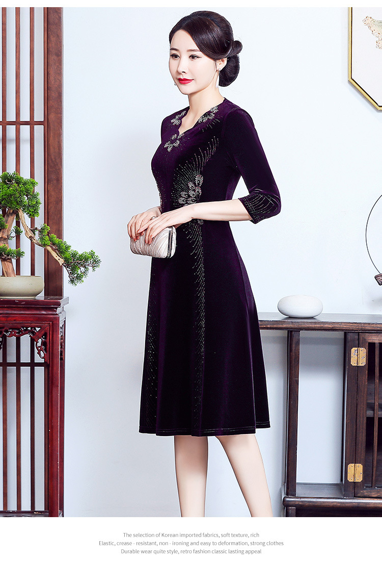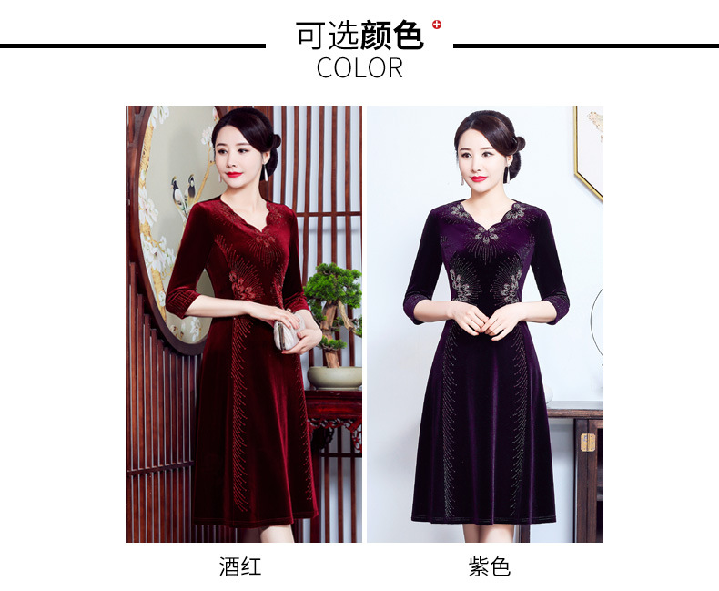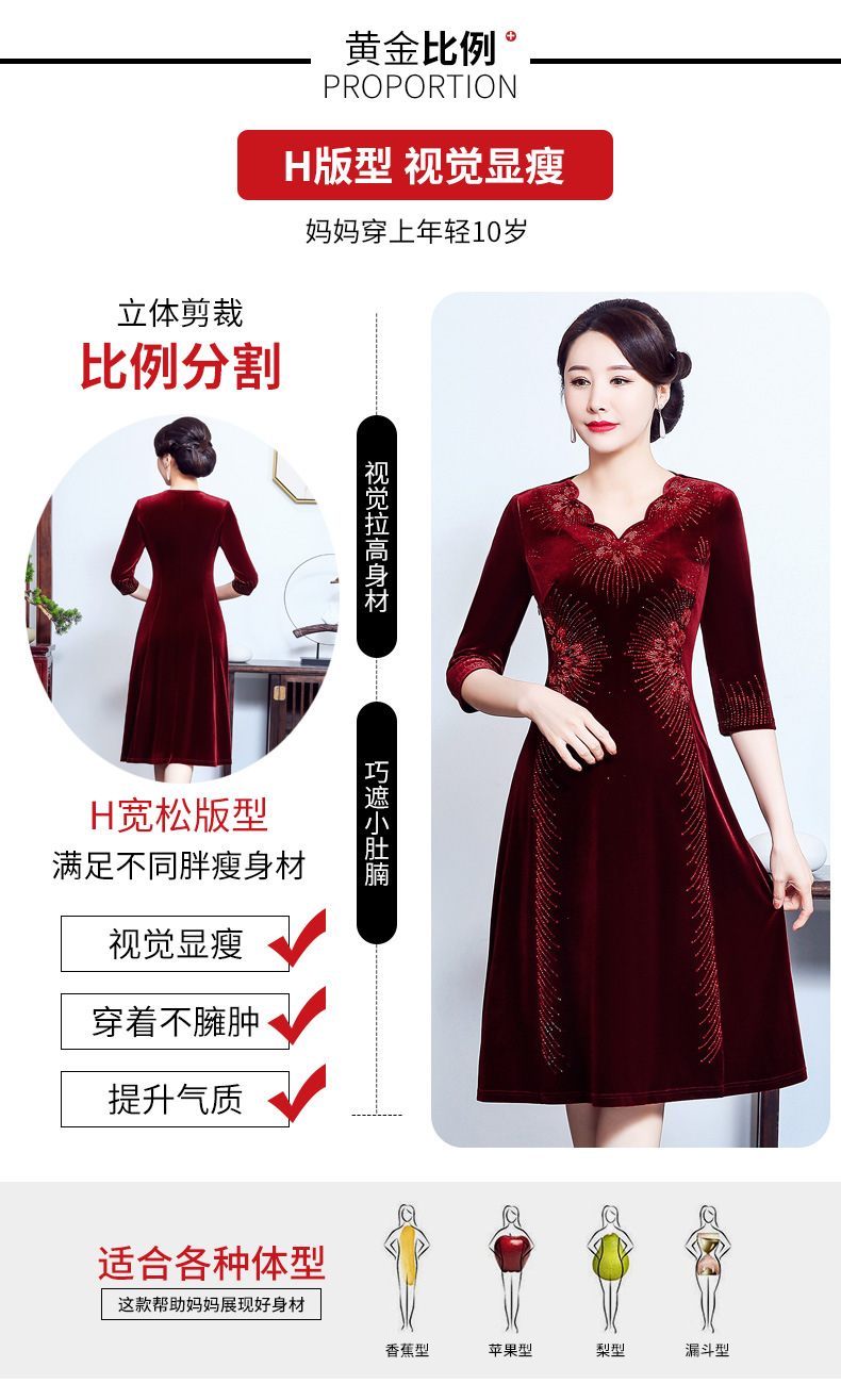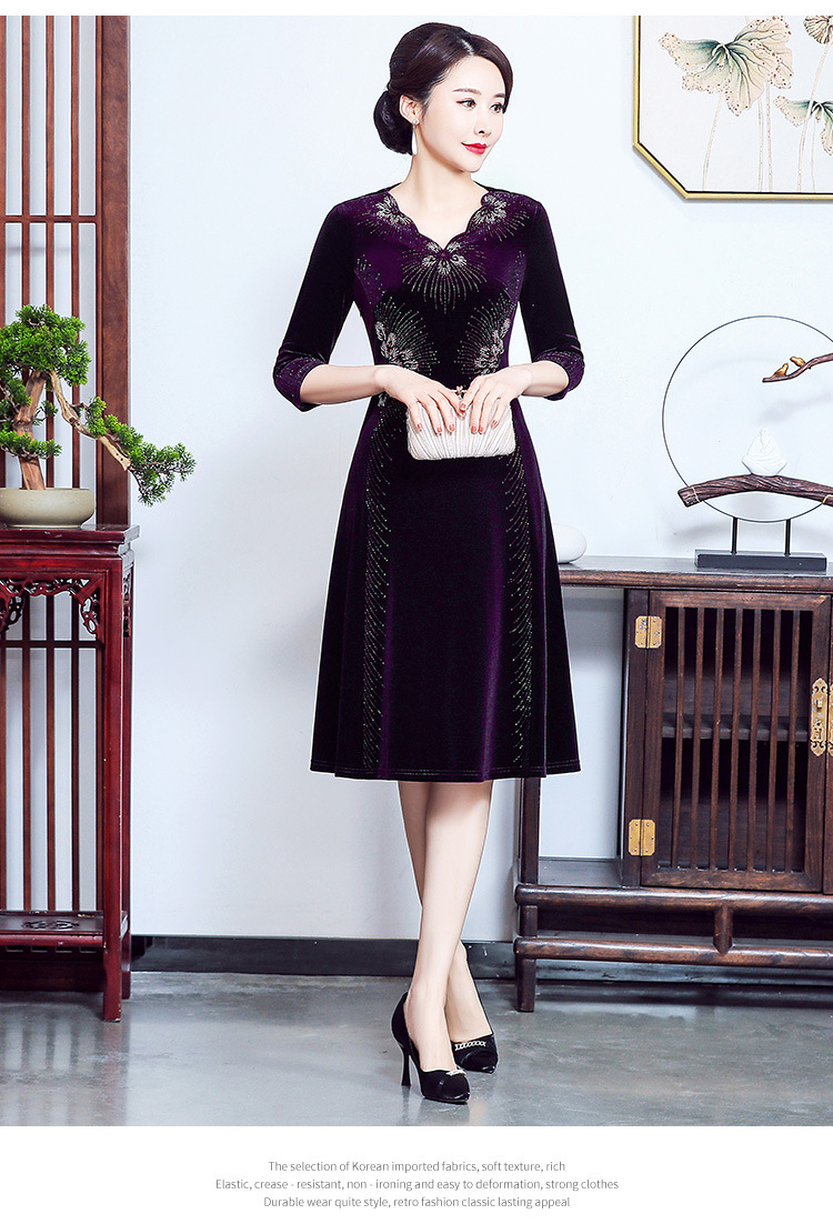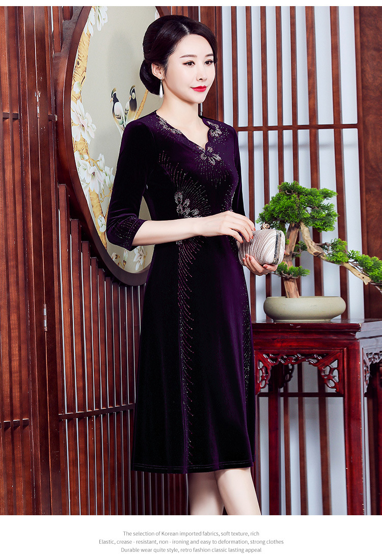 Вау, сплошное платье с золотым бархатом, теплым корейским V-образным вырезом с толстым верхом с длинными рукавами