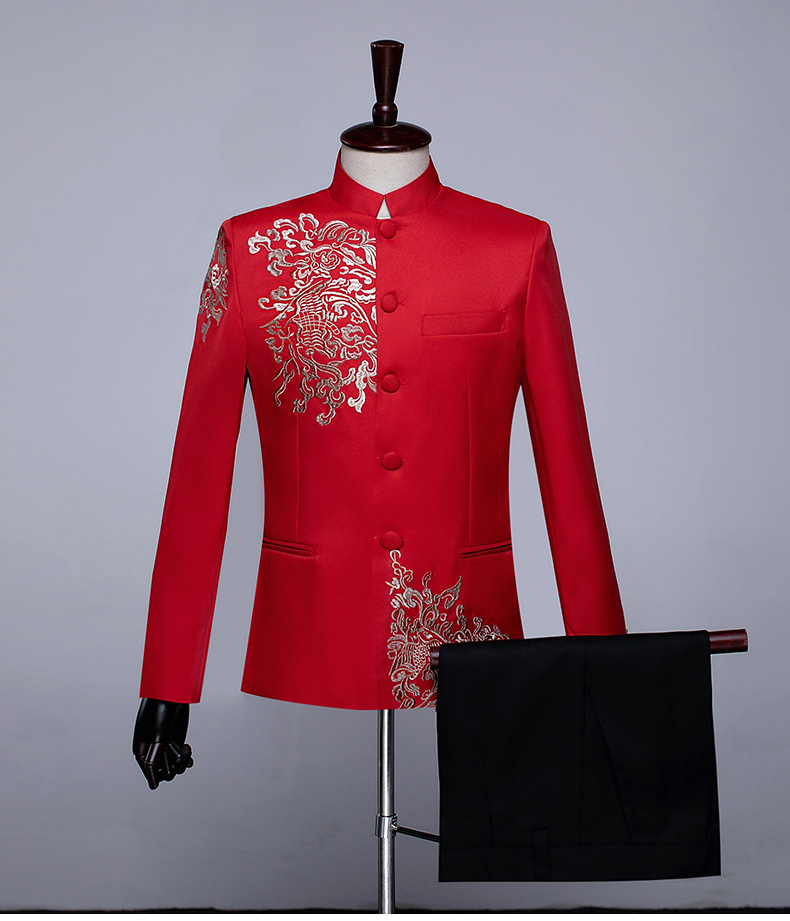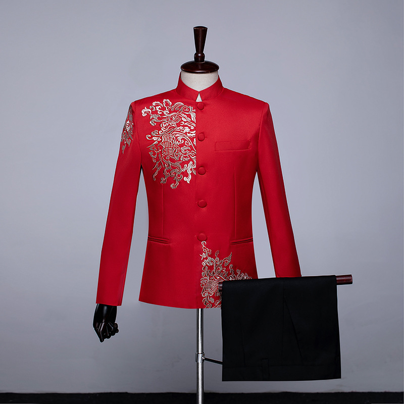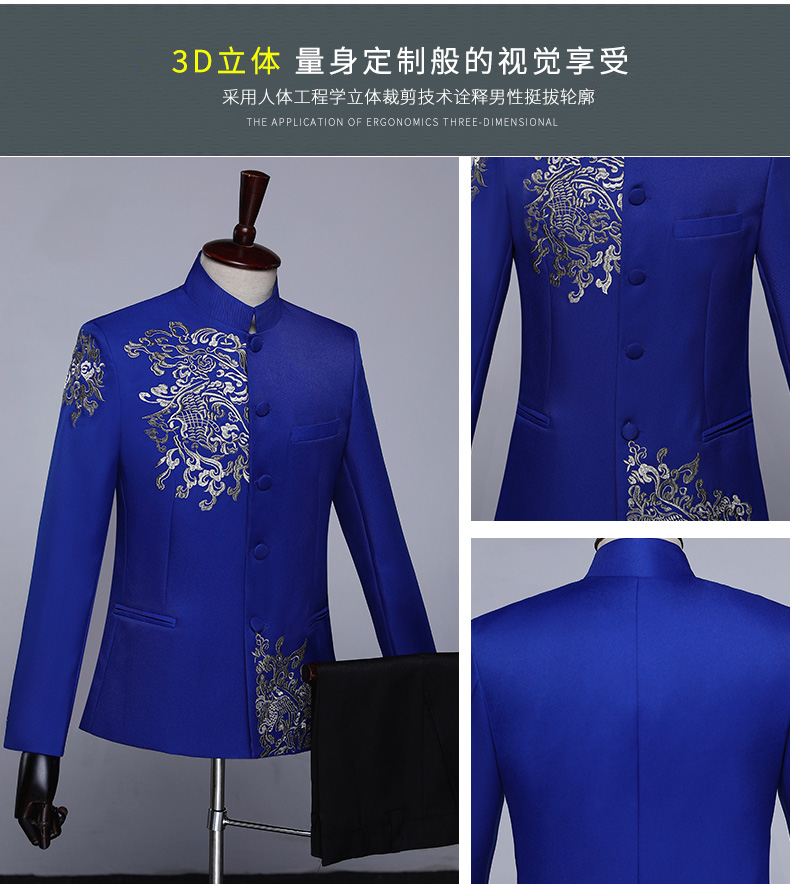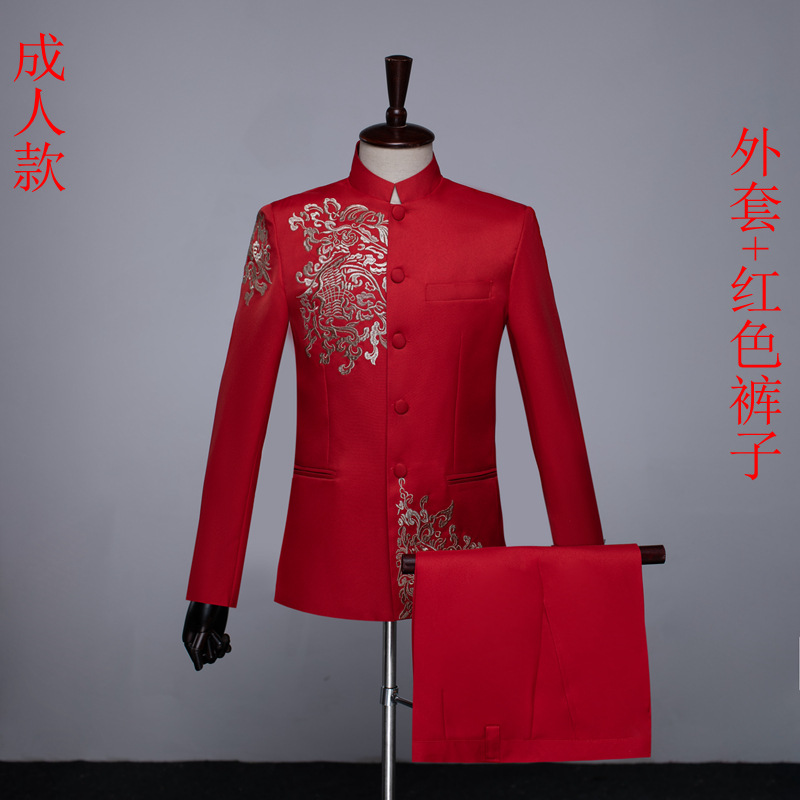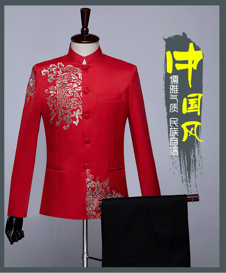 Чжуншань костюм мужской Вышитый Костюм для выступлений пожилых людей красная песня хор молодежь китайский стиль костюм хозяина мужской выпускной
