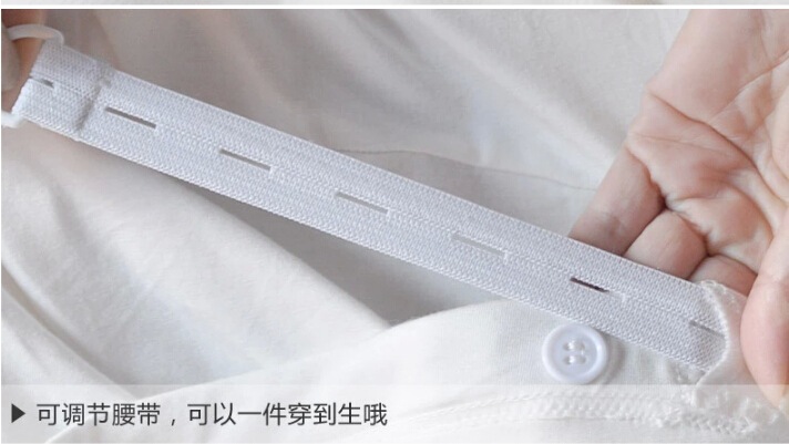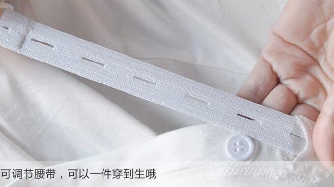 腹部设可调节扣带,满足孕期的腹围需求,贴心的孕妈专享设计,