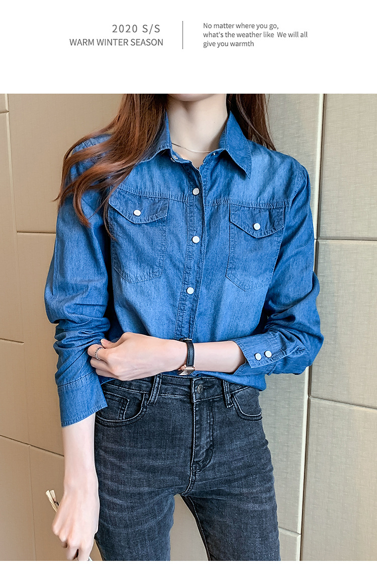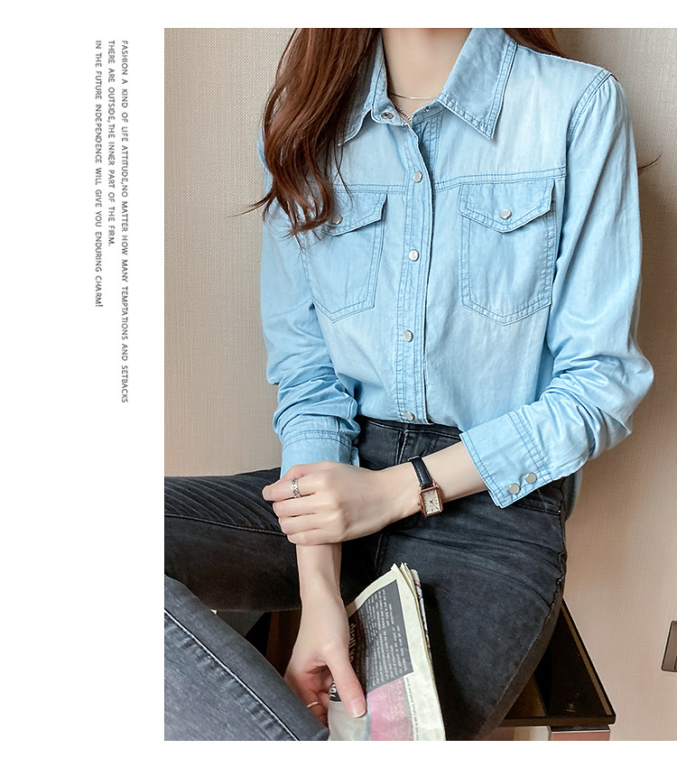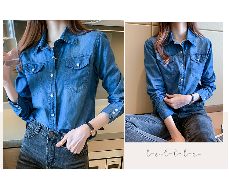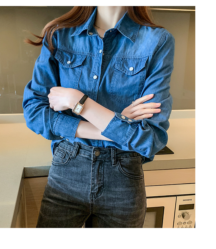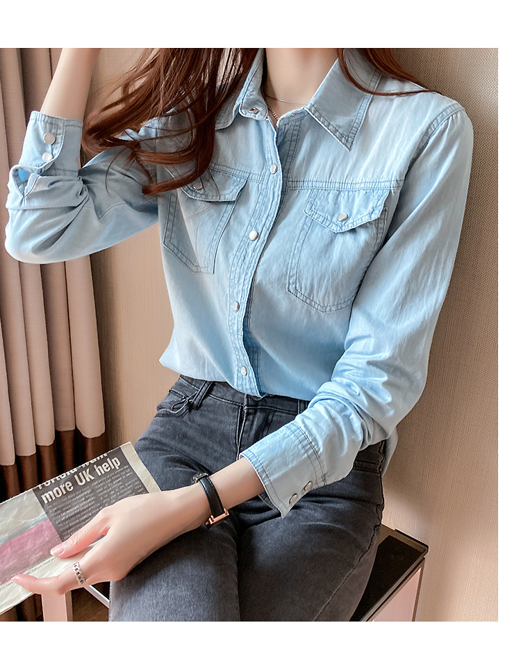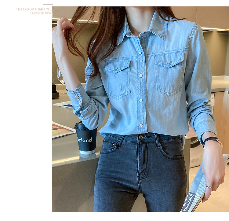 Джинсовая рубашка женская с длинными рукавами в академическом стиле, весна-осень 2021, новая облегающая Универсальная джинсовая рубашка в Корейском стиле, Женская Базовая рубашка