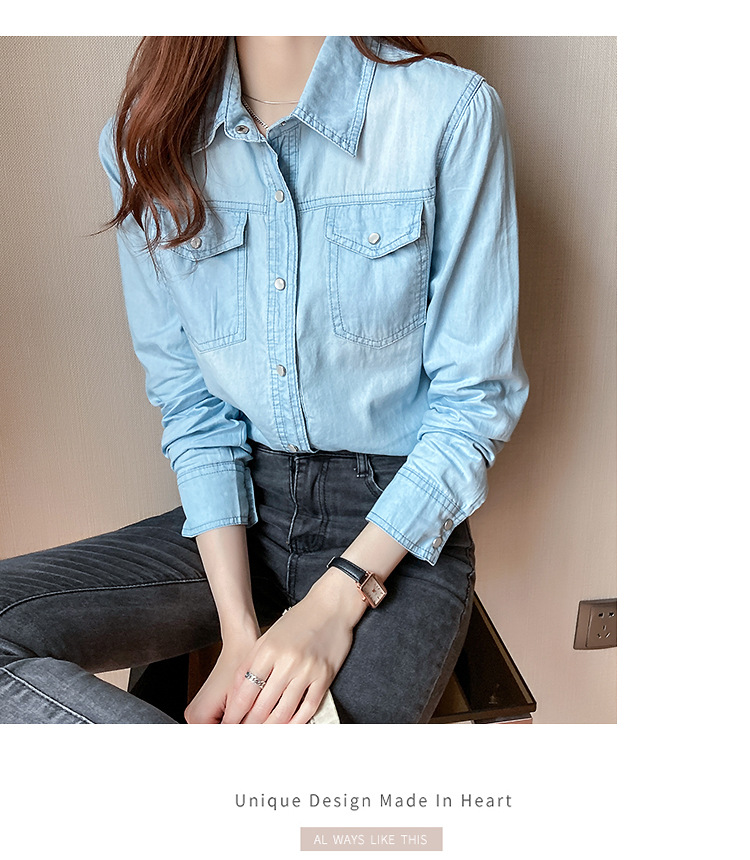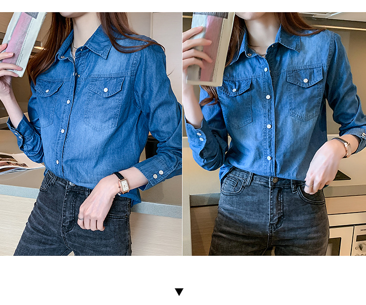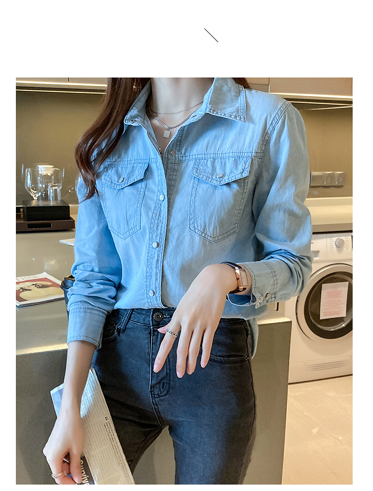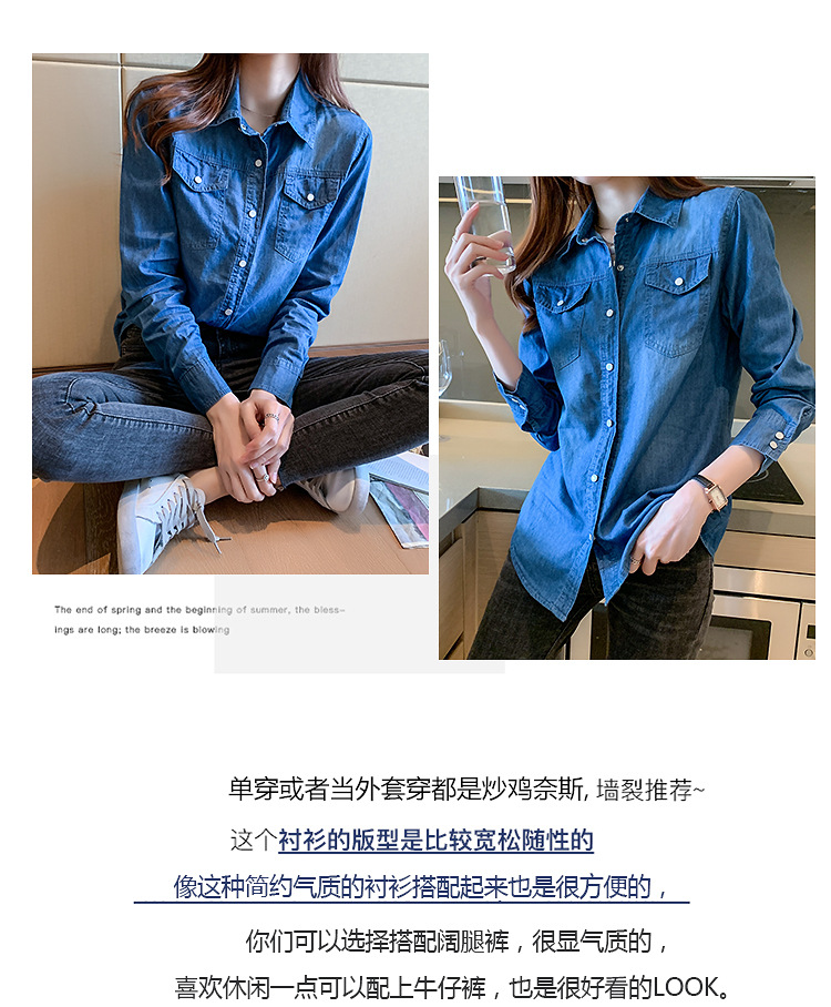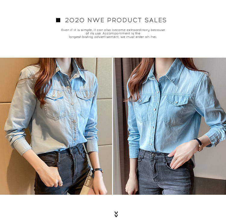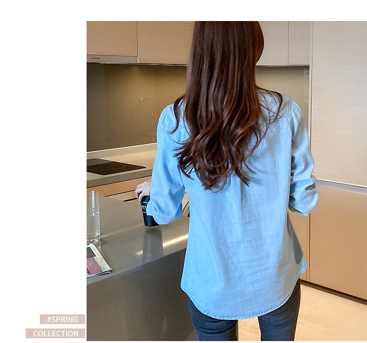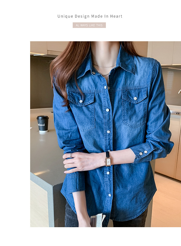 Джинсовая рубашка женская с длинными рукавами в академическом стиле, весна-осень 2021, новая облегающая Универсальная джинсовая рубашка в Корейском стиле, Женская Базовая рубашка