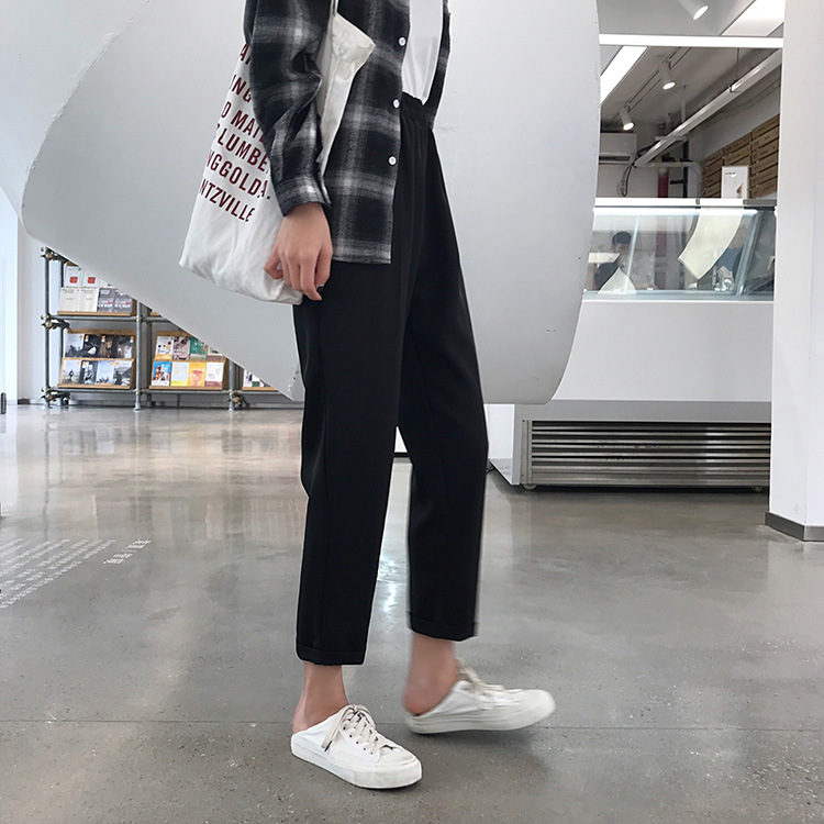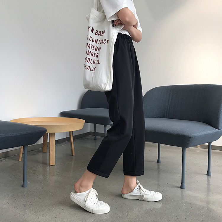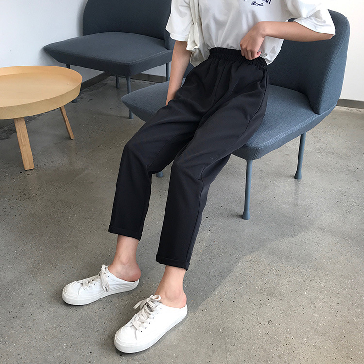 Широкие брюки женские брюки до щиколотки 2023 летние брюки с высокой талией для похудения женские студенческие свободные прямые повседневные брюки