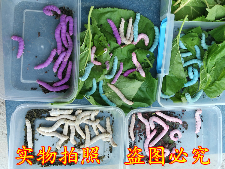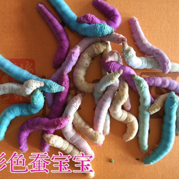 Питания цвета младенца шелкопряда питания младенца шелкопряда с желтым пурпурным красным голубым питанием