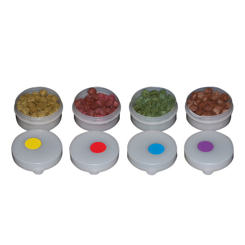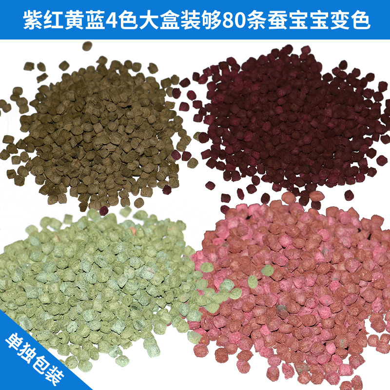 Фиолетовый желтый красный синий корм (маленькая коробка) 4 цвета; Фиолетовый корм (большая коробка) 120 г; Корм красный (большая коробка) 120г; Синий корм (большая коробка) 120 г; Жёлтый корм (большая коробка) 120 г; Фиолетовый, красный, жёлтый и синий корм (большая упаковка 120 г) 4 цвета; Белый корм (большая коробка, 120 г)