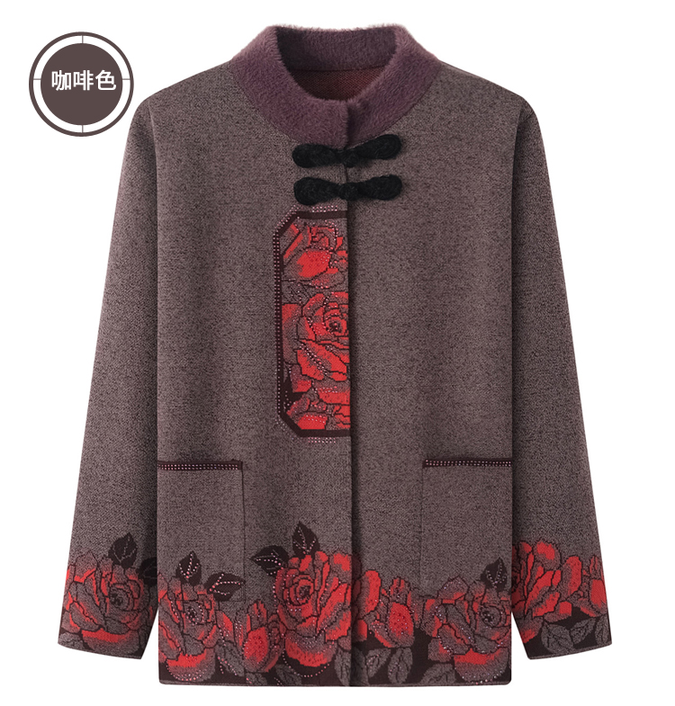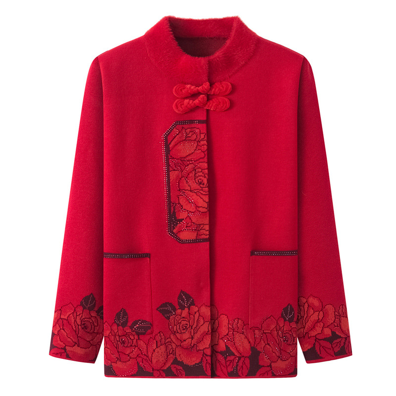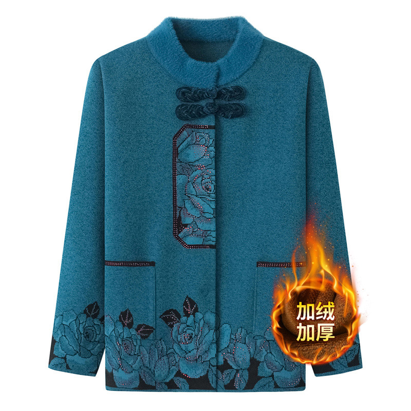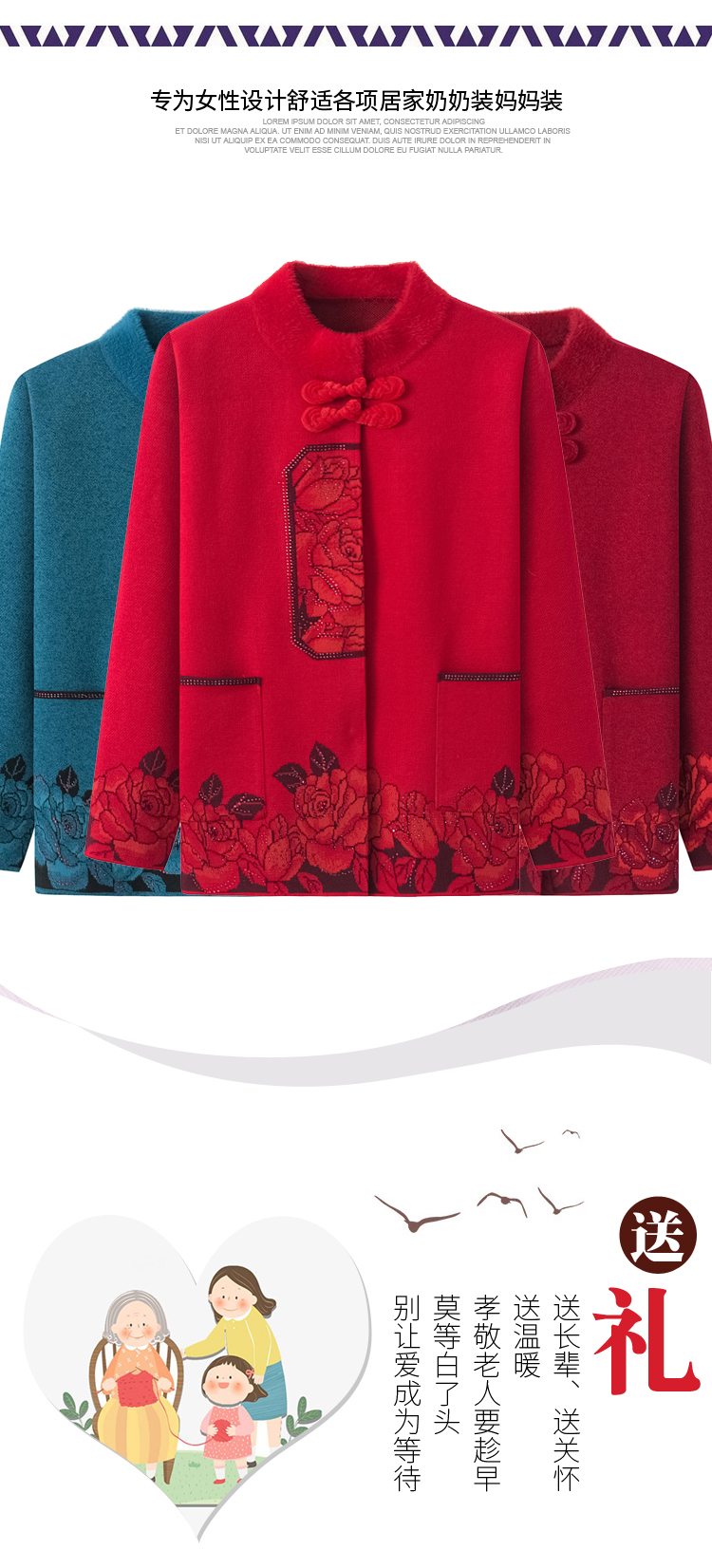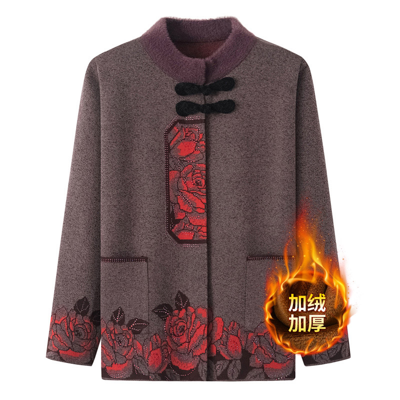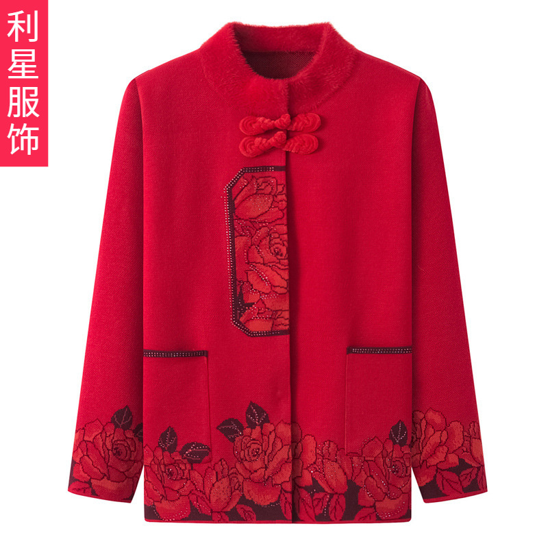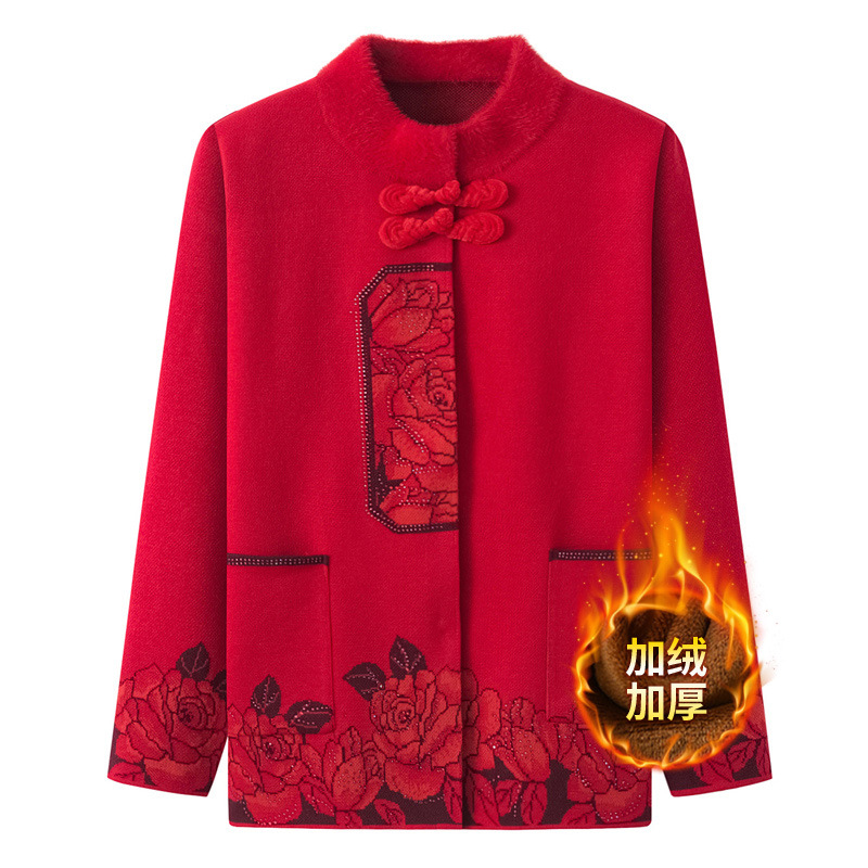 Бабушка осенне-зимний свитер пальто женский кардиган на флисовой подкладке праздничный костюм Old Tang Новый год мать старая леди одежда