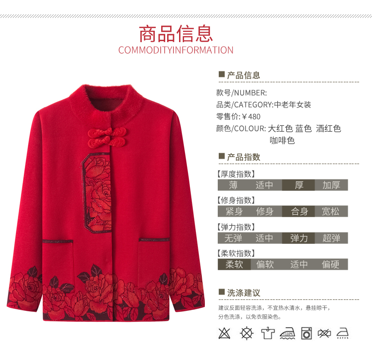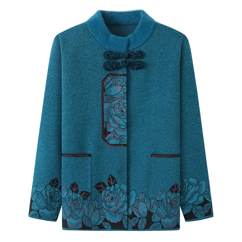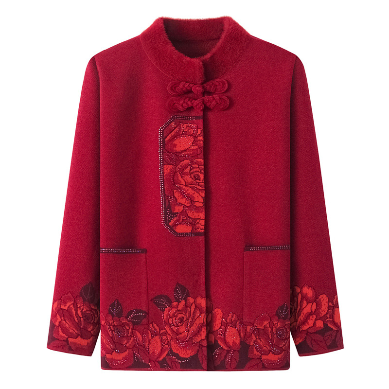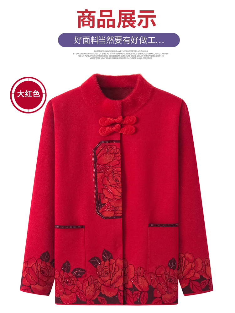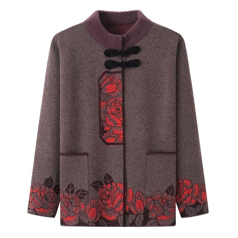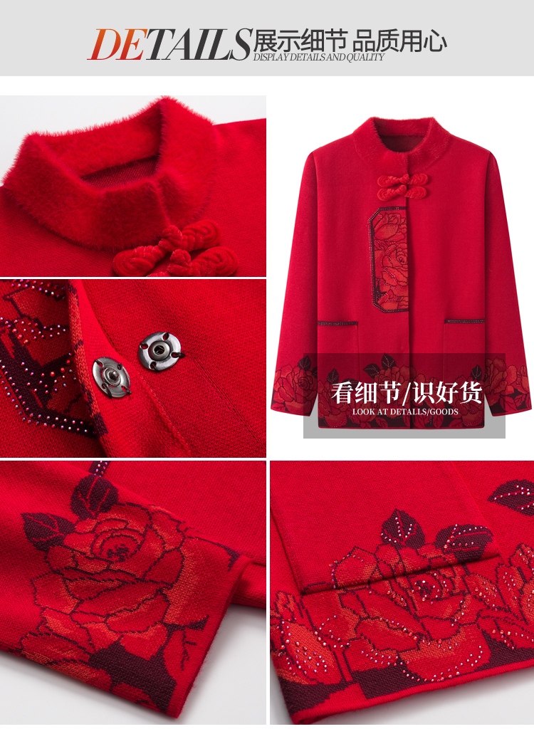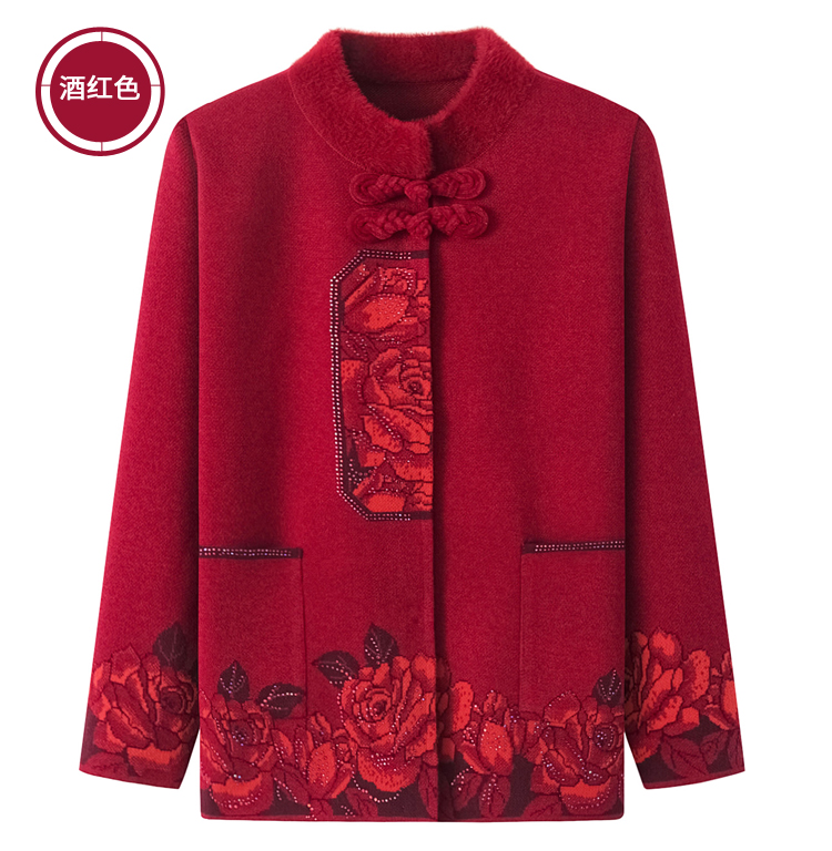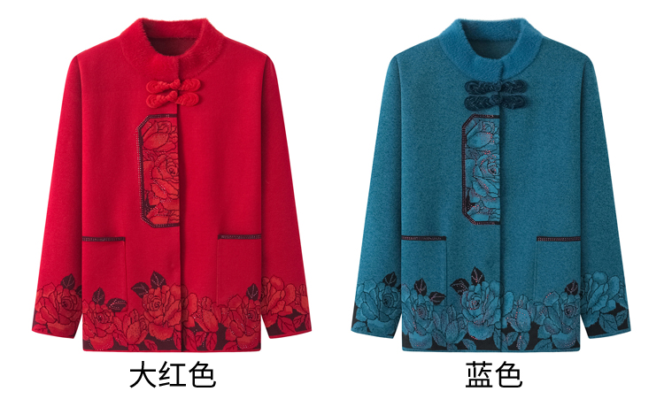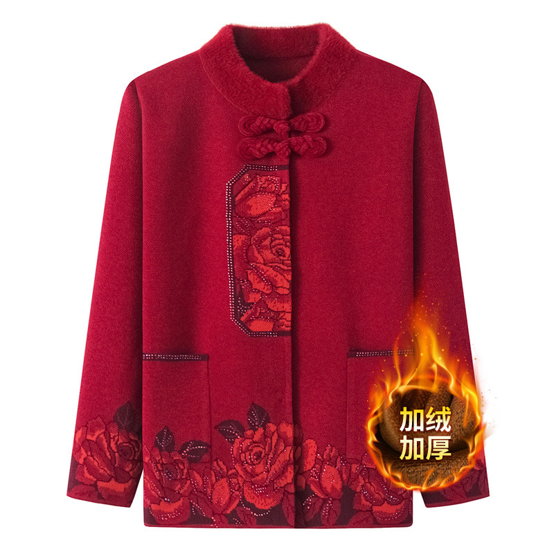 Бабушка осенне-зимний свитер пальто женский кардиган на флисовой подкладке праздничный костюм Old Tang Новый год мать старая леди одежда