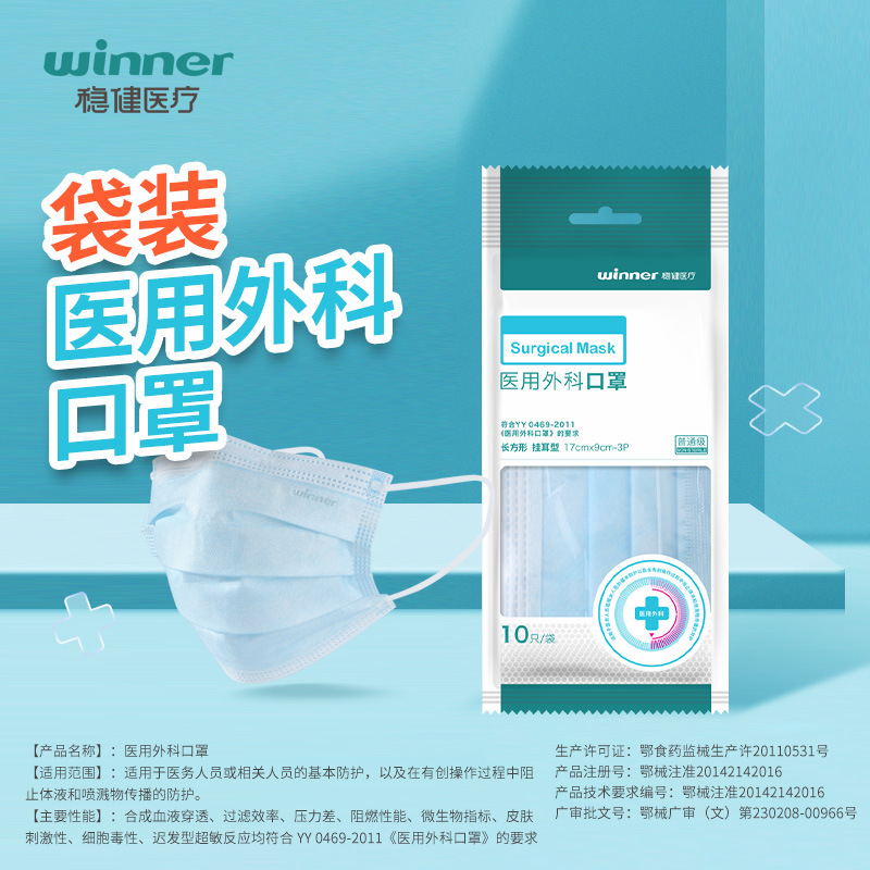 Надежная медицинская хирургическая маска Winner, трехслойная Механическая одноразовая медицинская маска размером с шрифт 10 шт. в упаковке