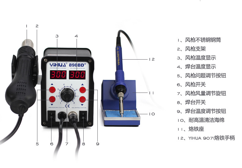 Yihua YH-898BD + два-в-одном Термофен паяльная станция с термофеном паяльная станция с горячим воздухом