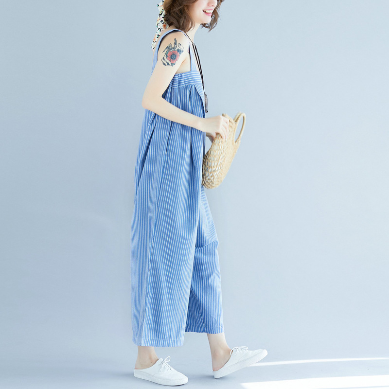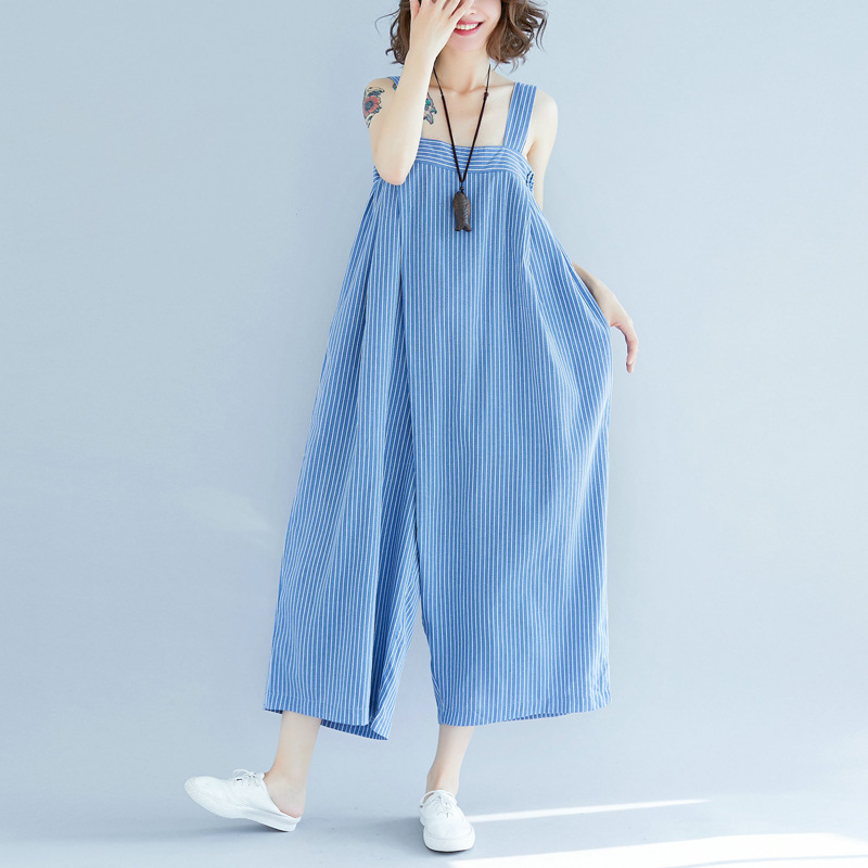 Настоящий выстрел 2021 Летний Новый Свободный комбинезон больших размеров с широкими штанинами для девочек Повседневный комбинезон с нагрудным ремнем хлопковые брюки