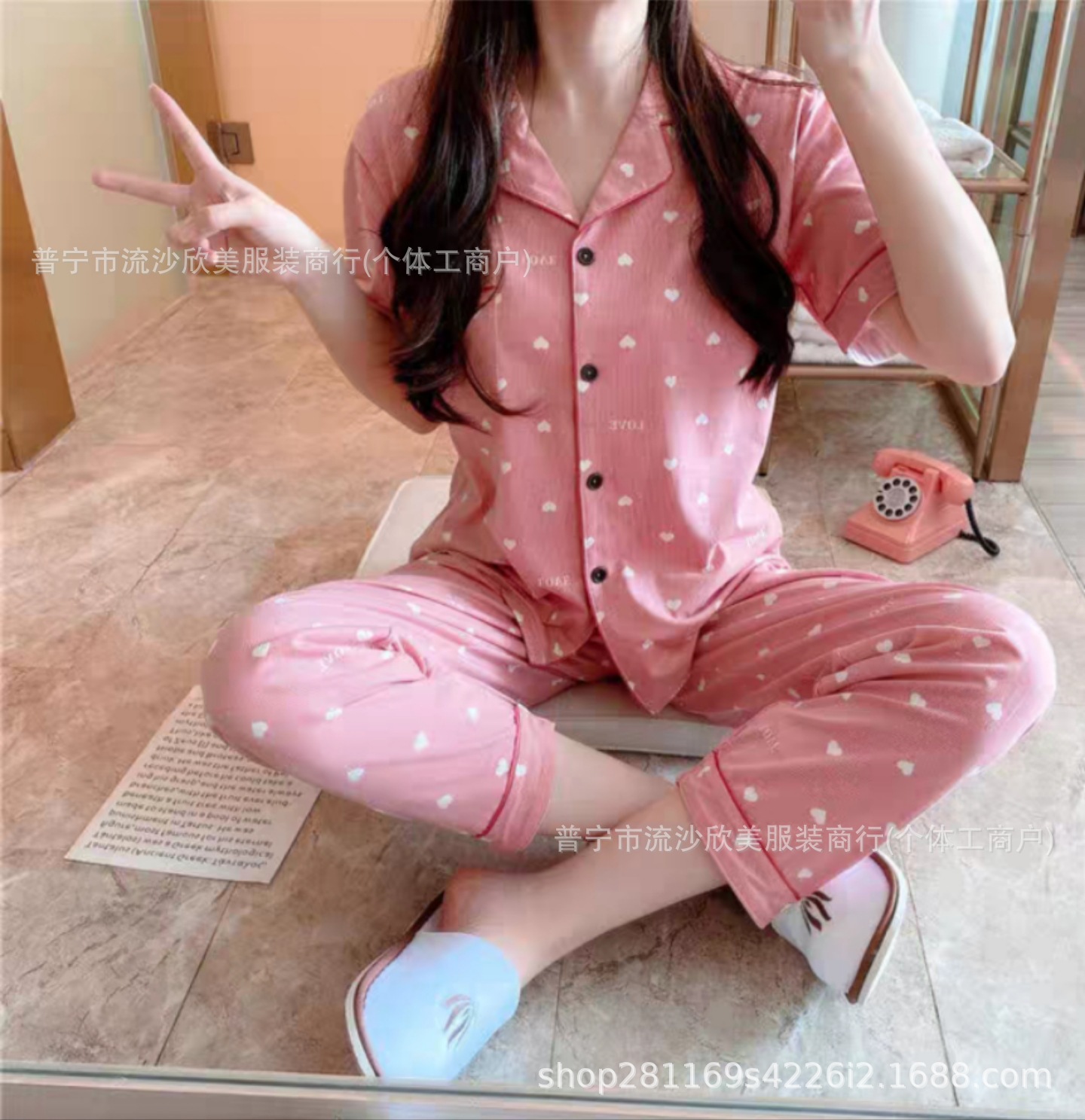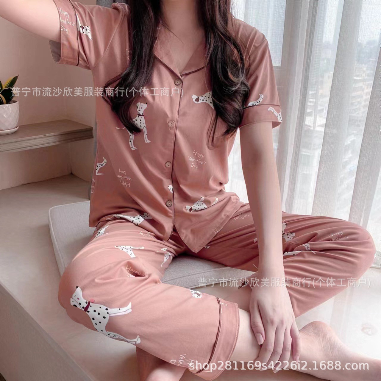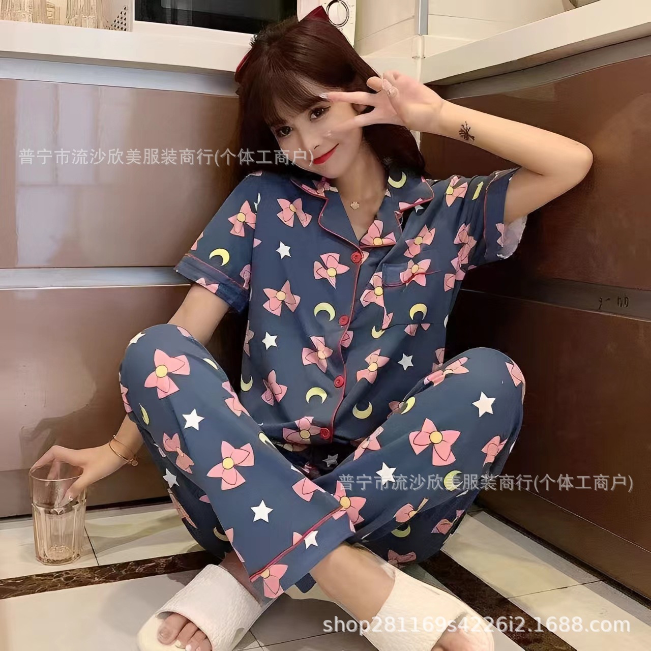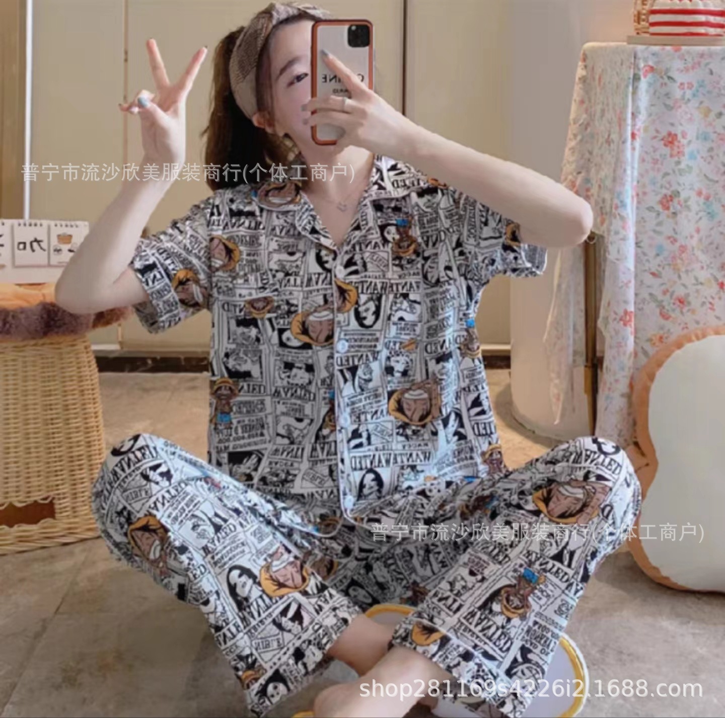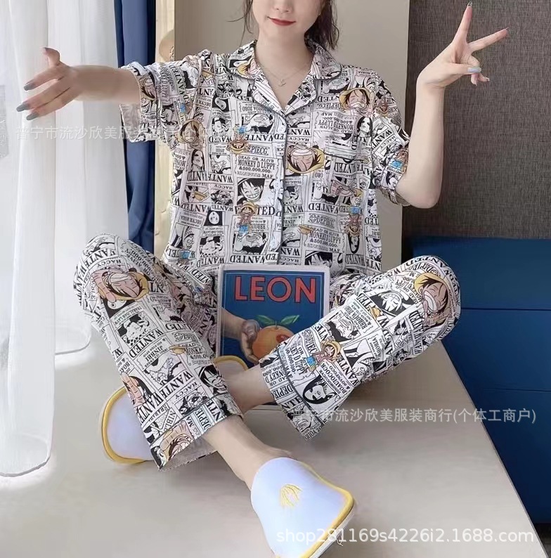 Юго-Восточная Азия Пижамы Юго-Восточной Азии женские брюки с короткими рукавами осенне-летний мультяшный женский домашний костюм с открытой грудью