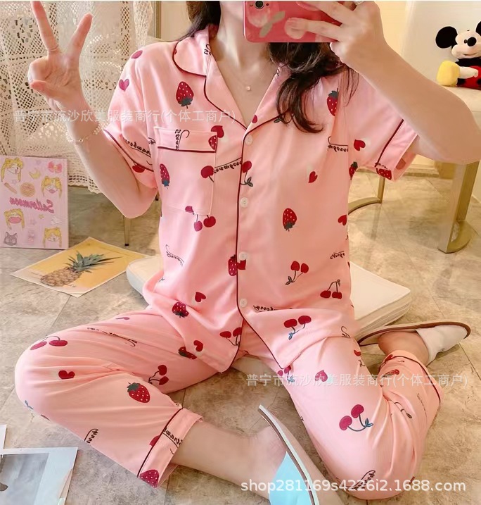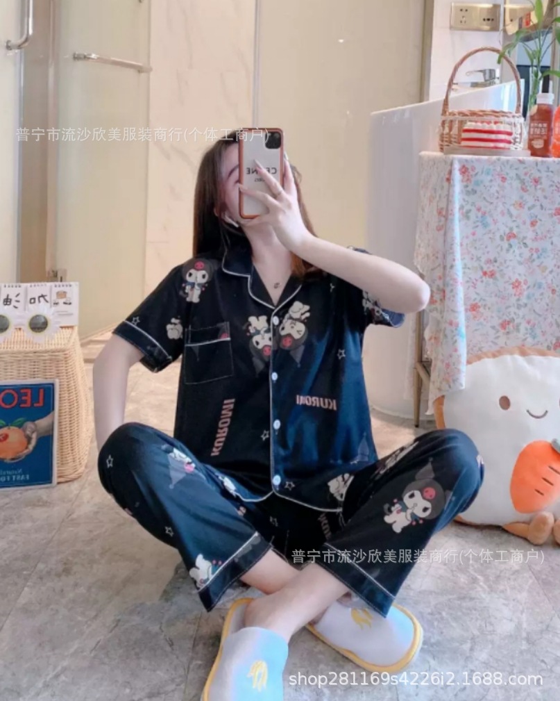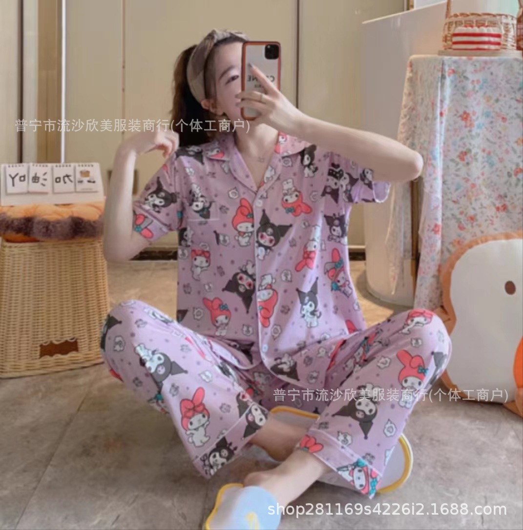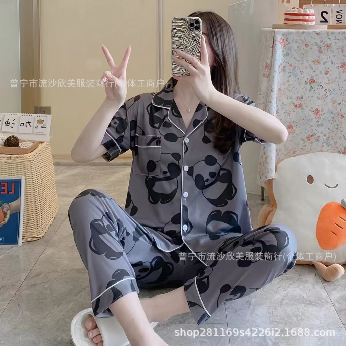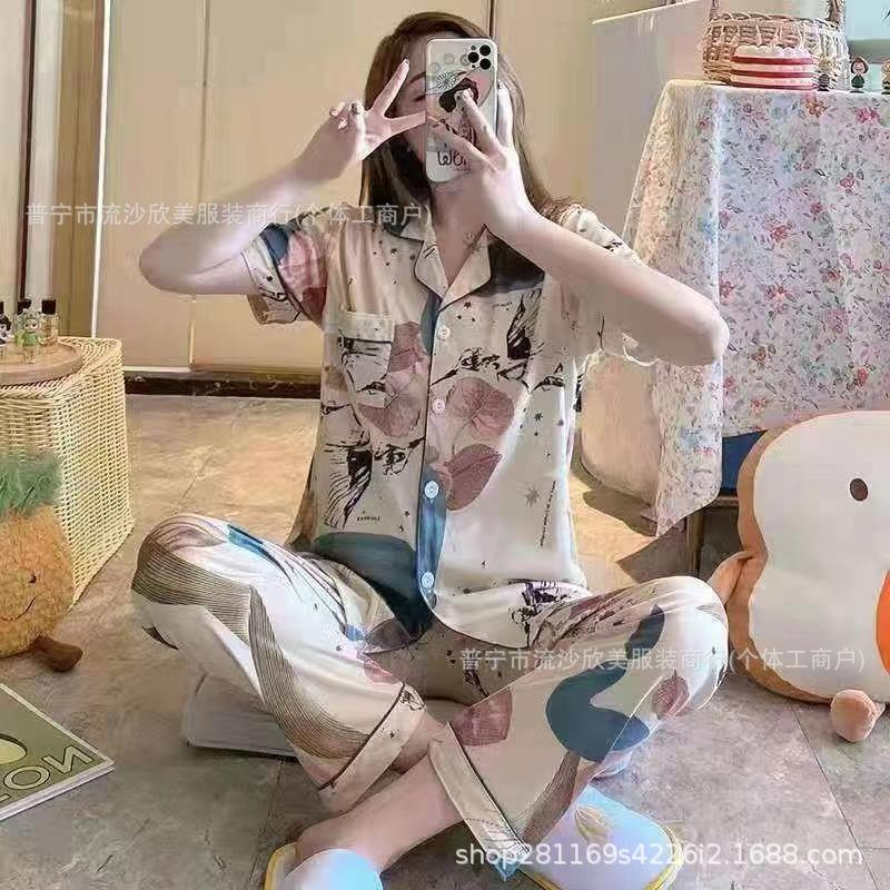 Юго-Восточная Азия Пижамы Юго-Восточной Азии женские брюки с короткими рукавами осенне-летний мультяшный женский домашний костюм с открытой грудью