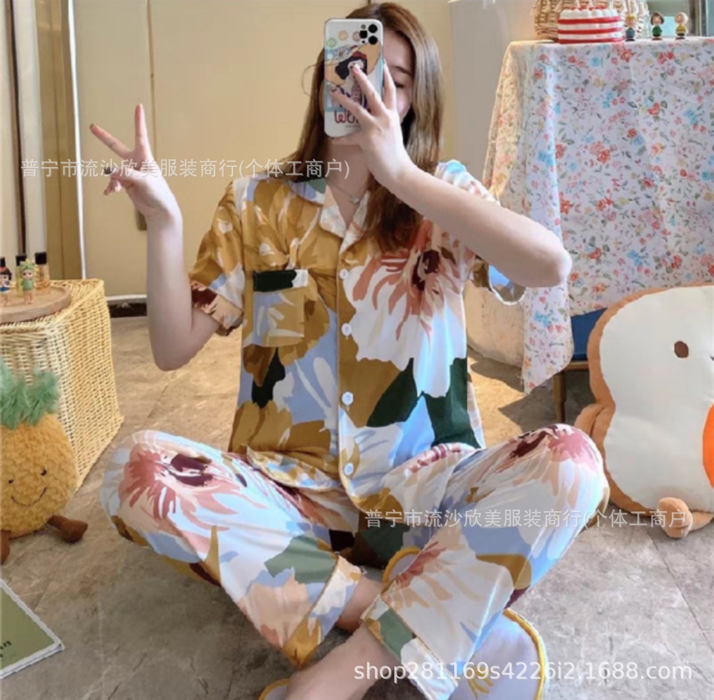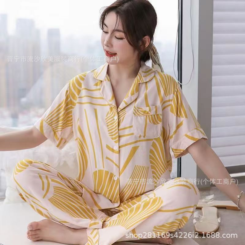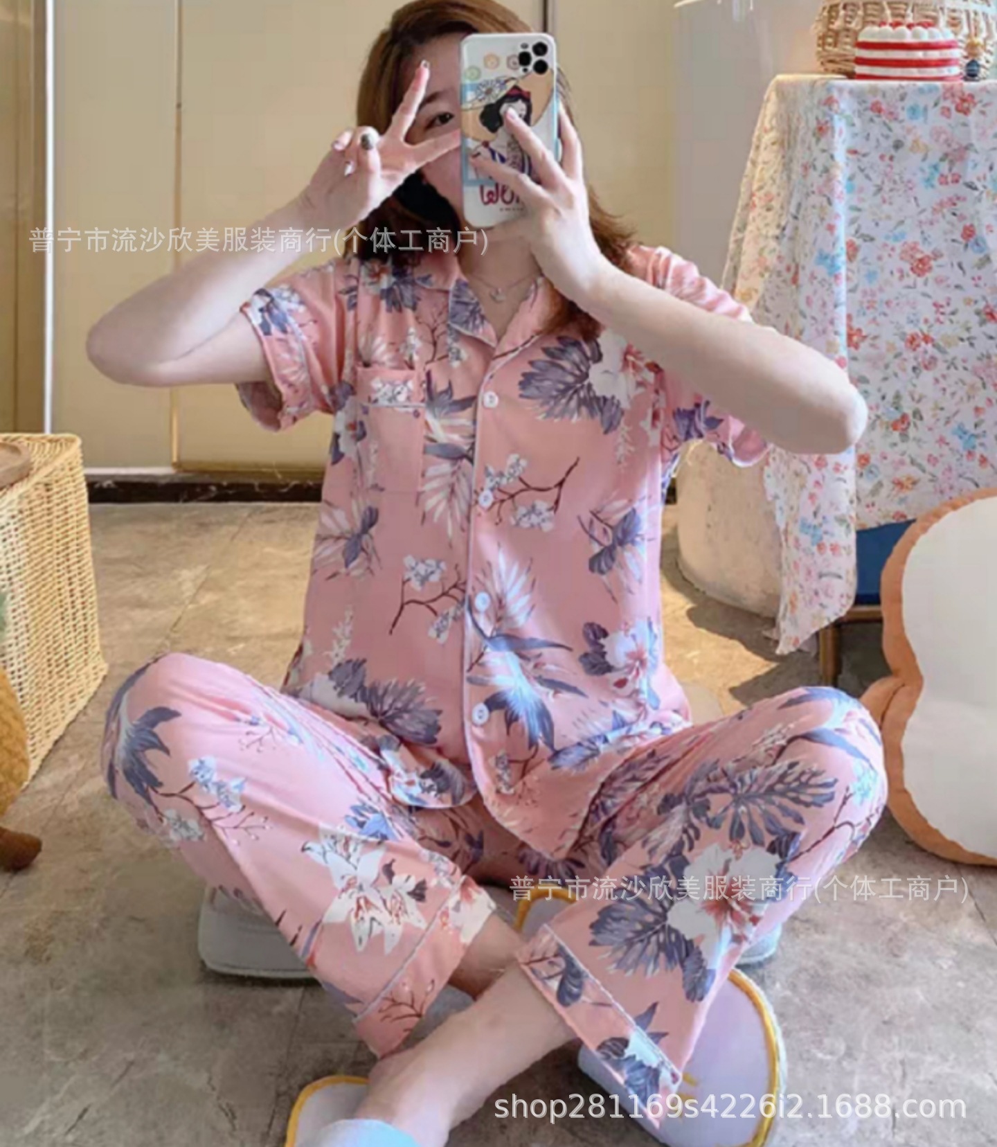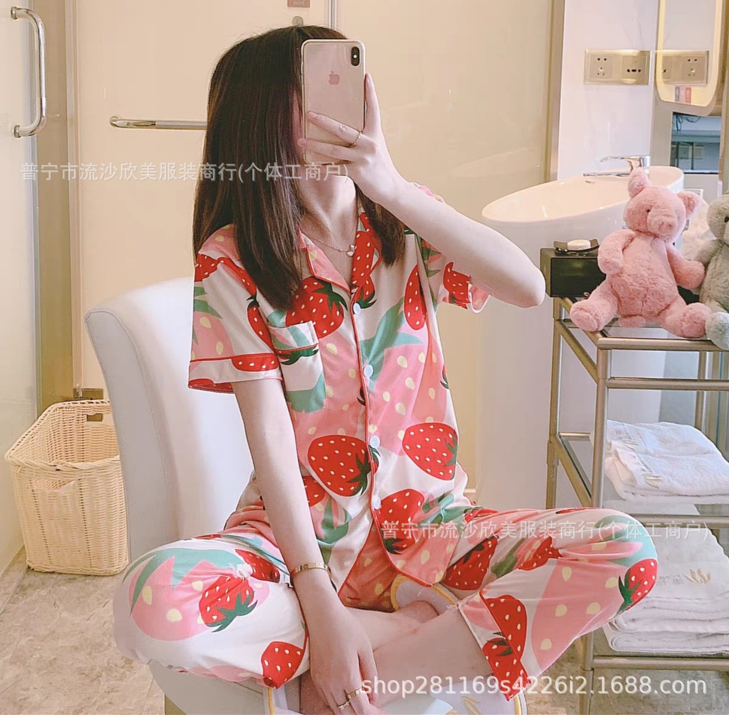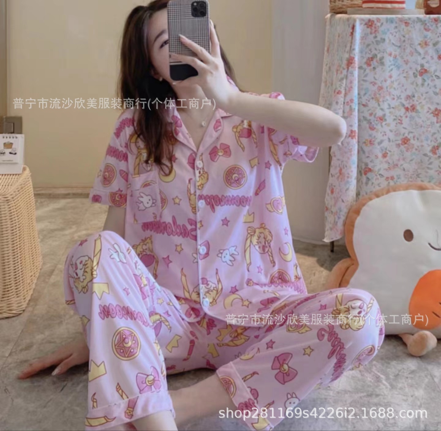Юго-Восточная Азия Пижамы Юго-Восточной Азии женские брюки с короткими рукавами осенне-летний мультяшный женский домашний костюм с открытой грудью
