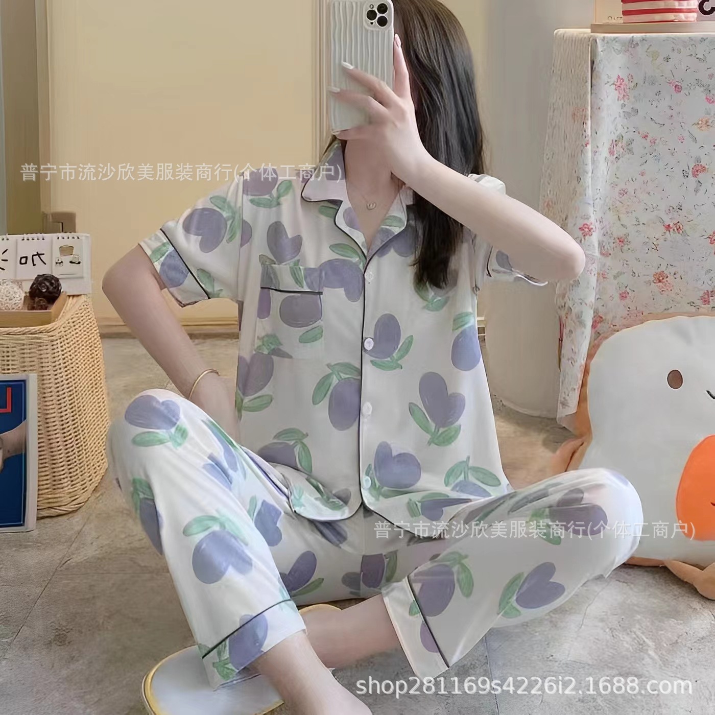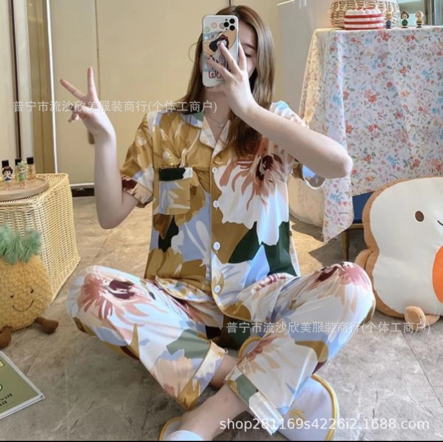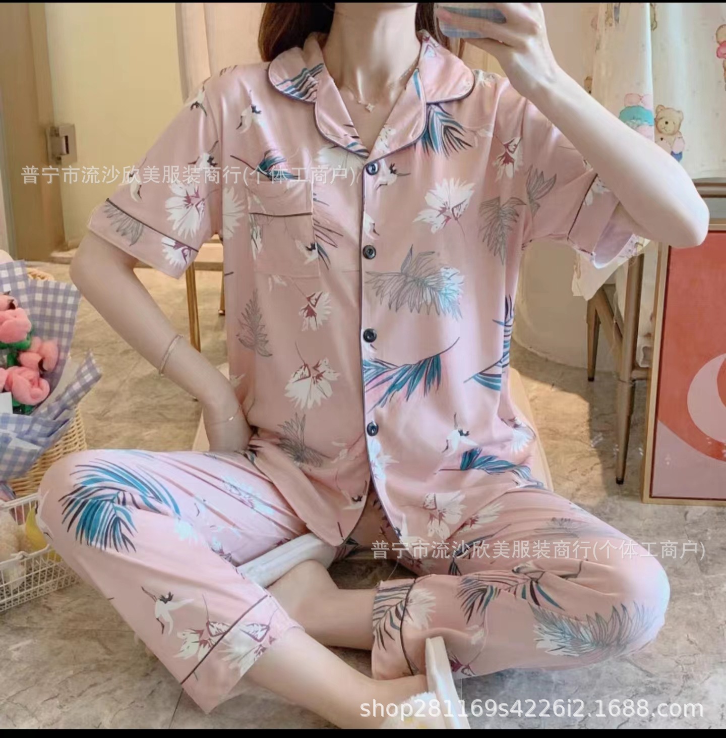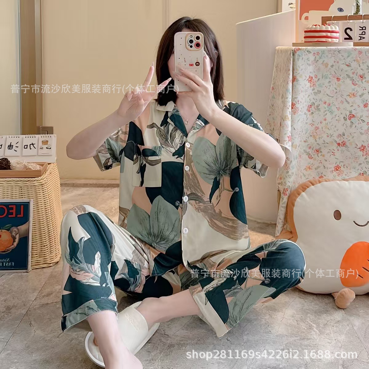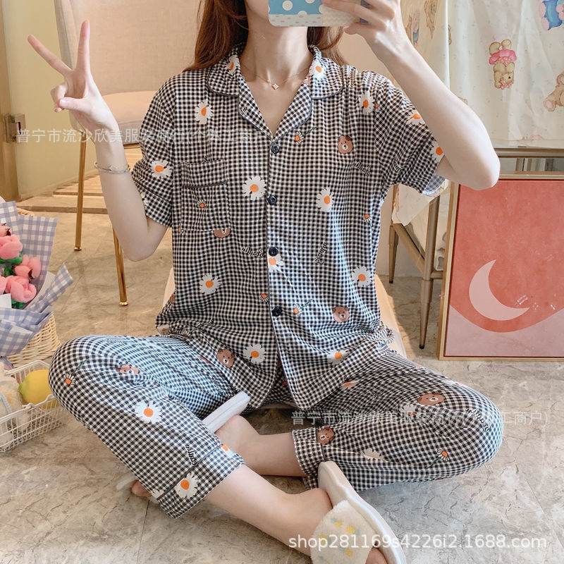 Юго-Восточная Азия Пижамы Юго-Восточной Азии женские брюки с короткими рукавами осенне-летний мультяшный женский домашний костюм с открытой грудью