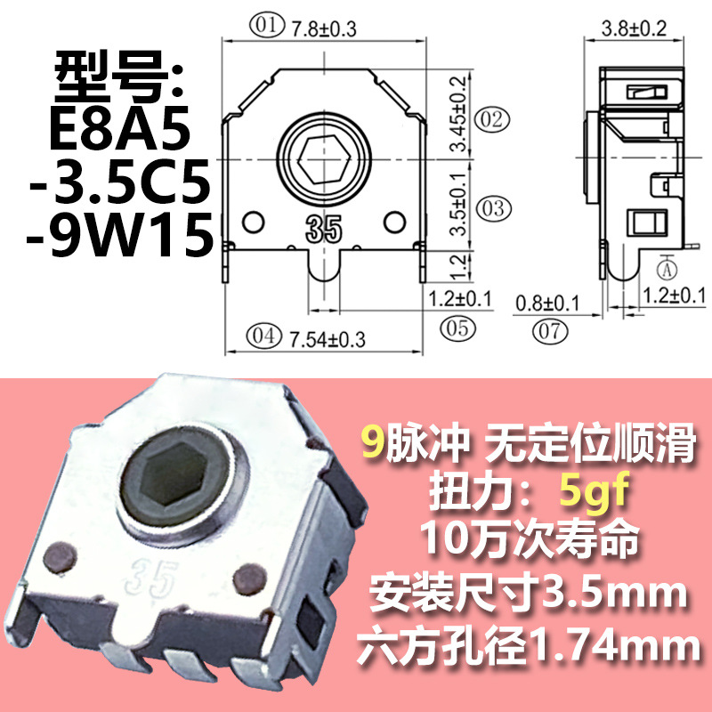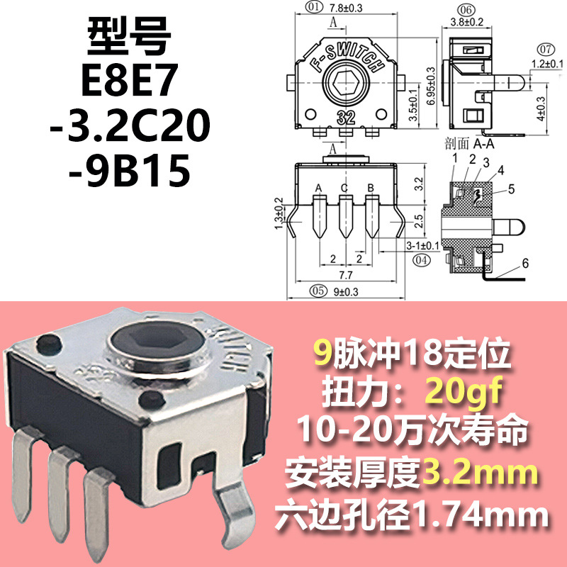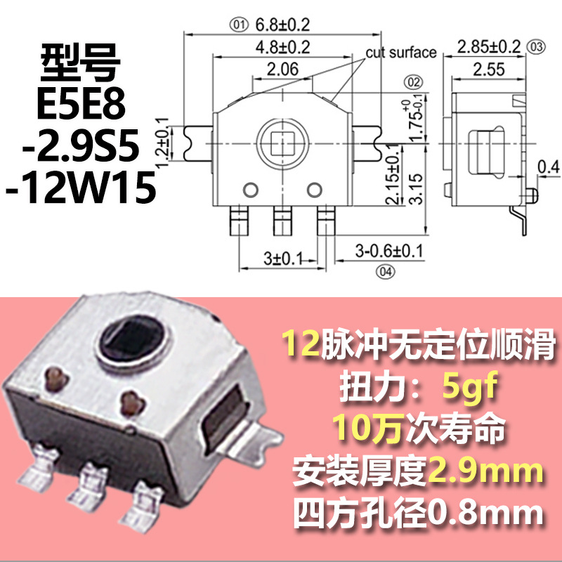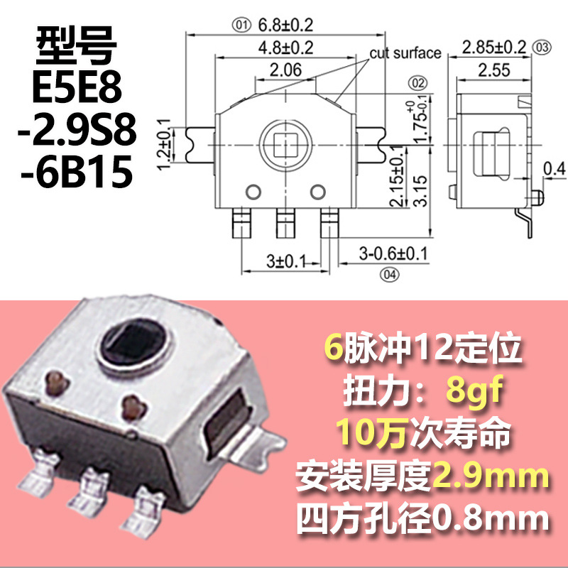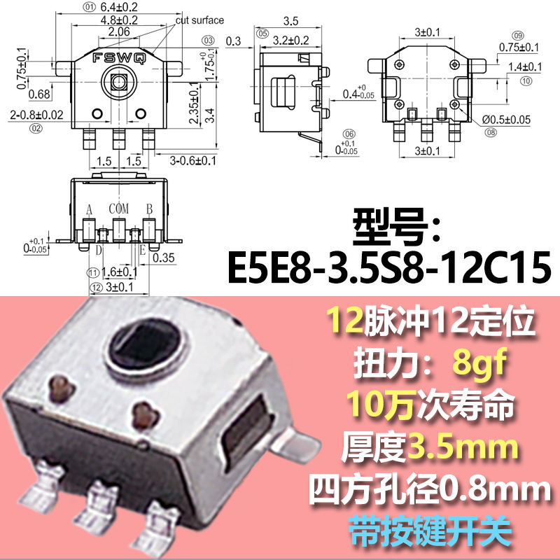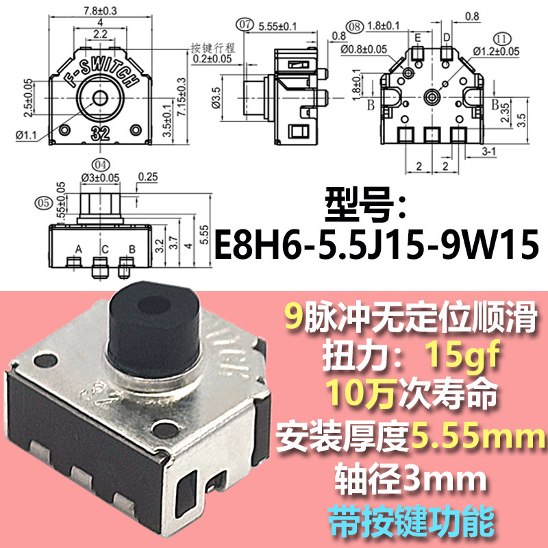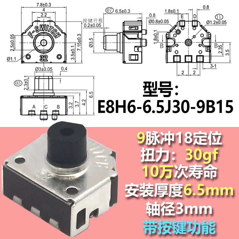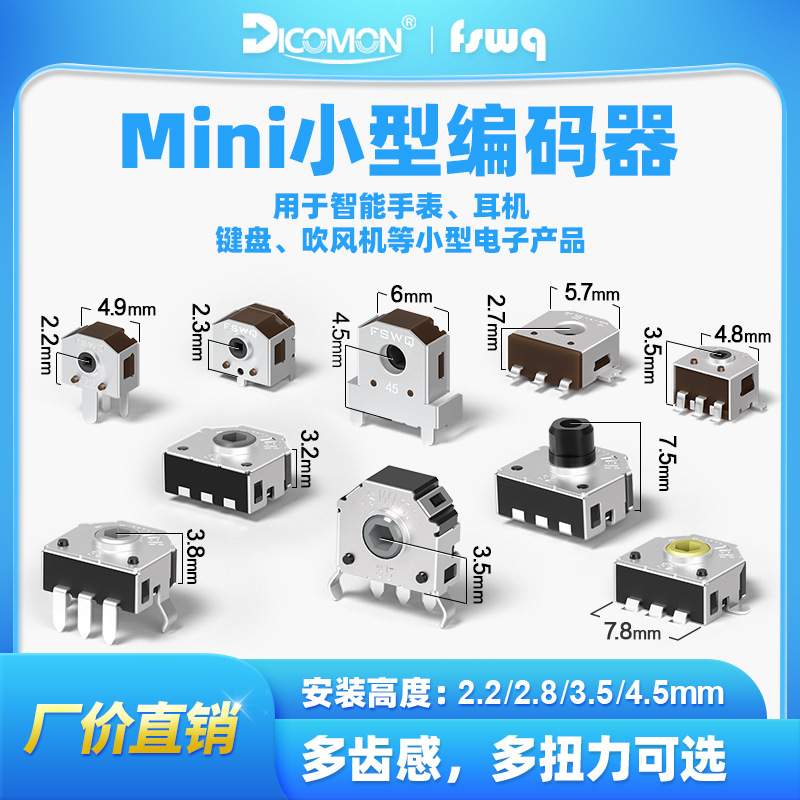 Маленький микро-энкодер F-Switch 2,8 мм, гарнитура для умных часов, маленький вентилятор, энкодер колеса мыши