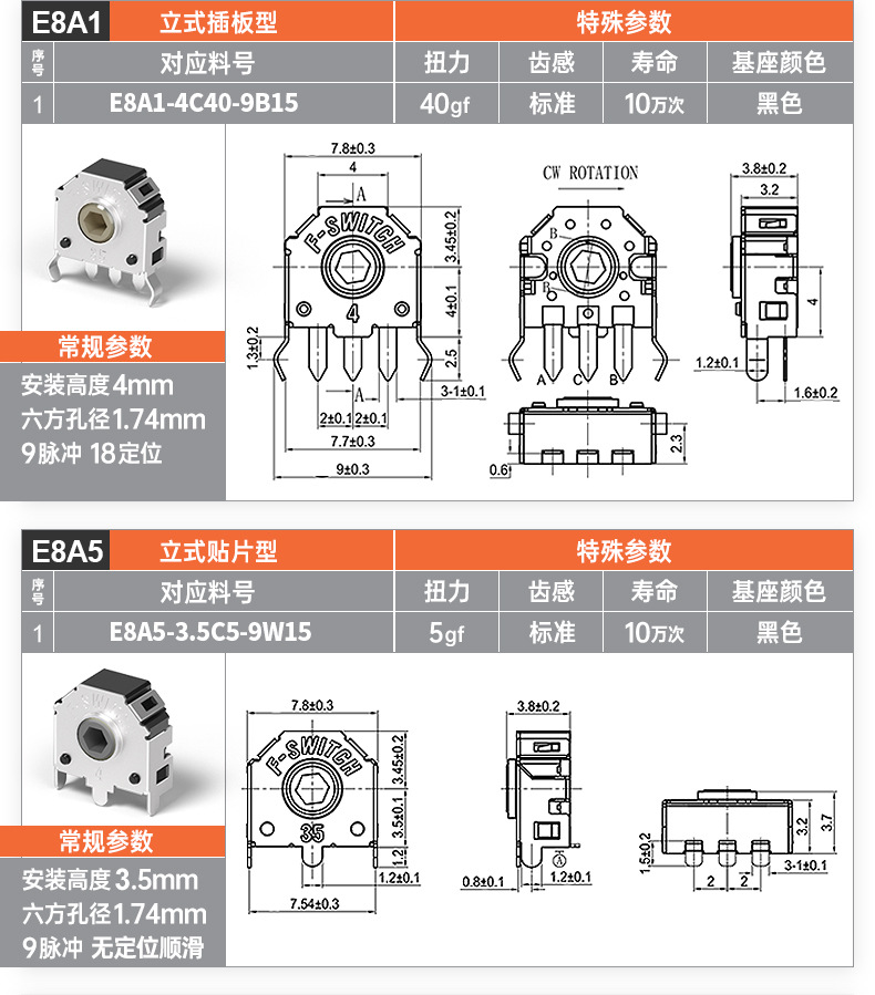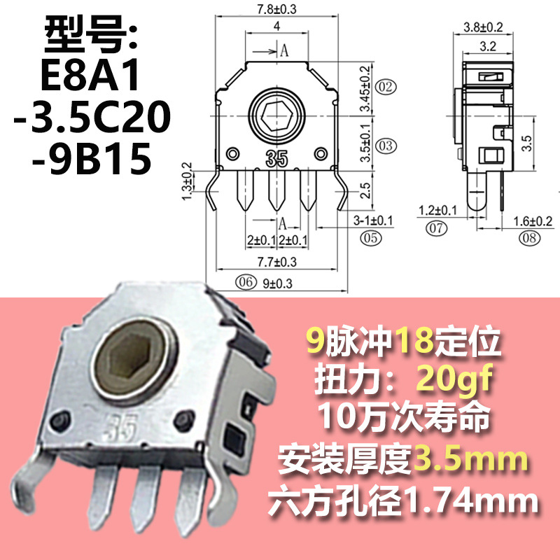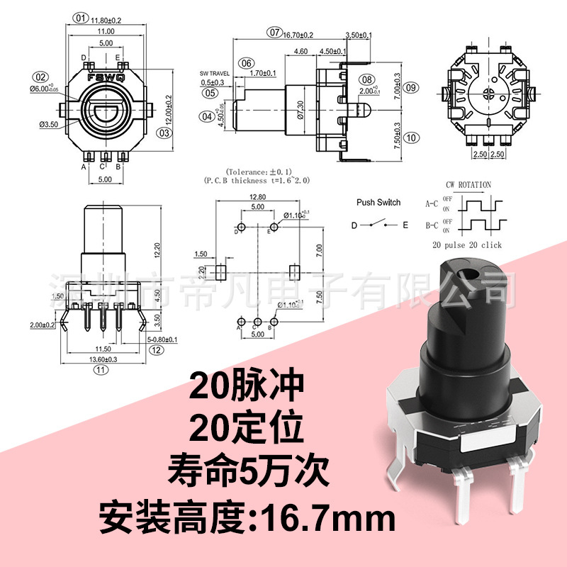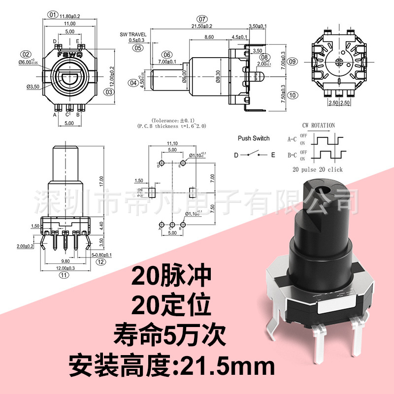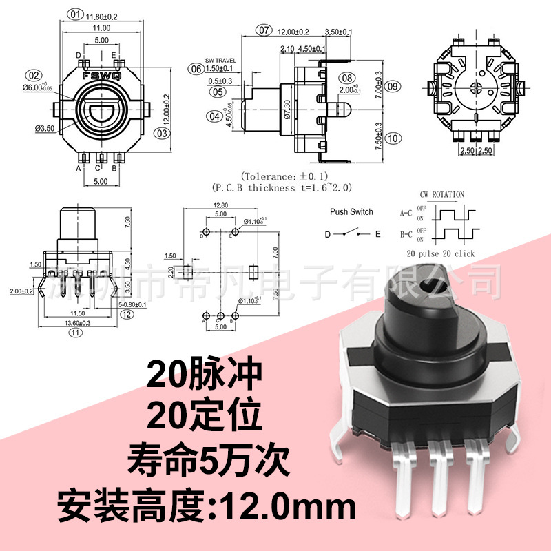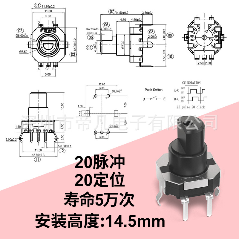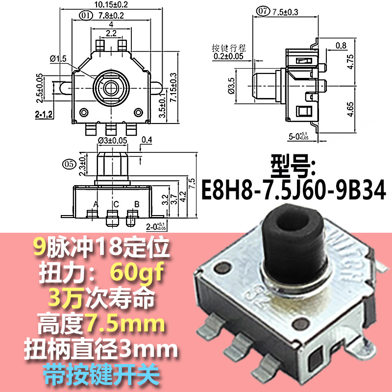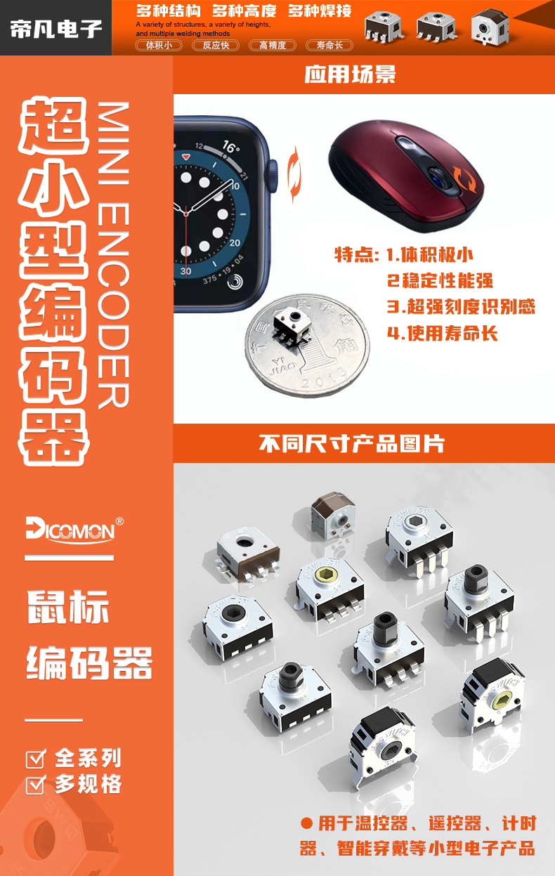 Маленький микро-энкодер F-Switch 2,8 мм, гарнитура для умных часов, маленький вентилятор, энкодер колеса мыши