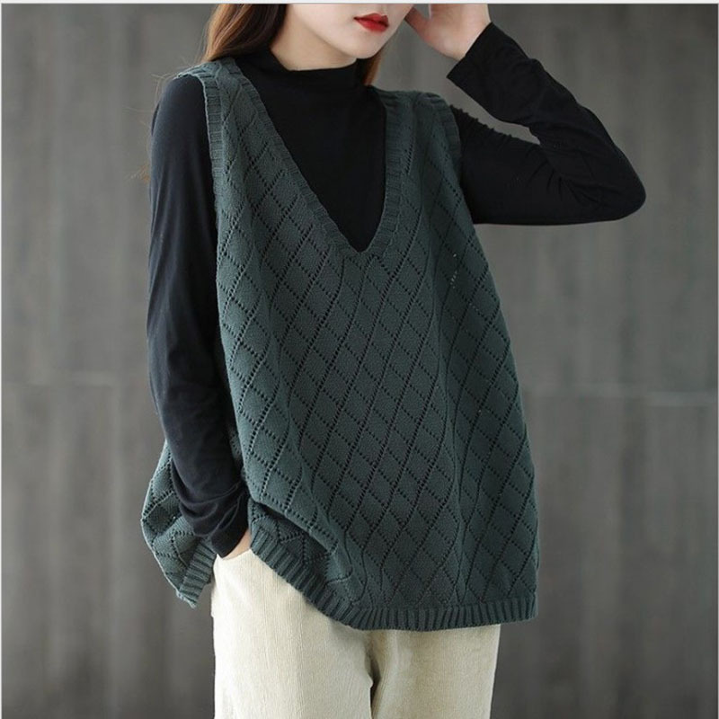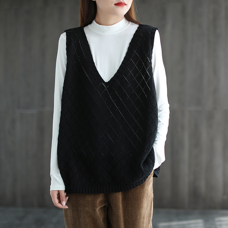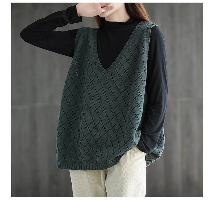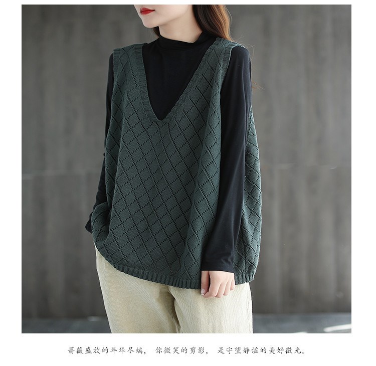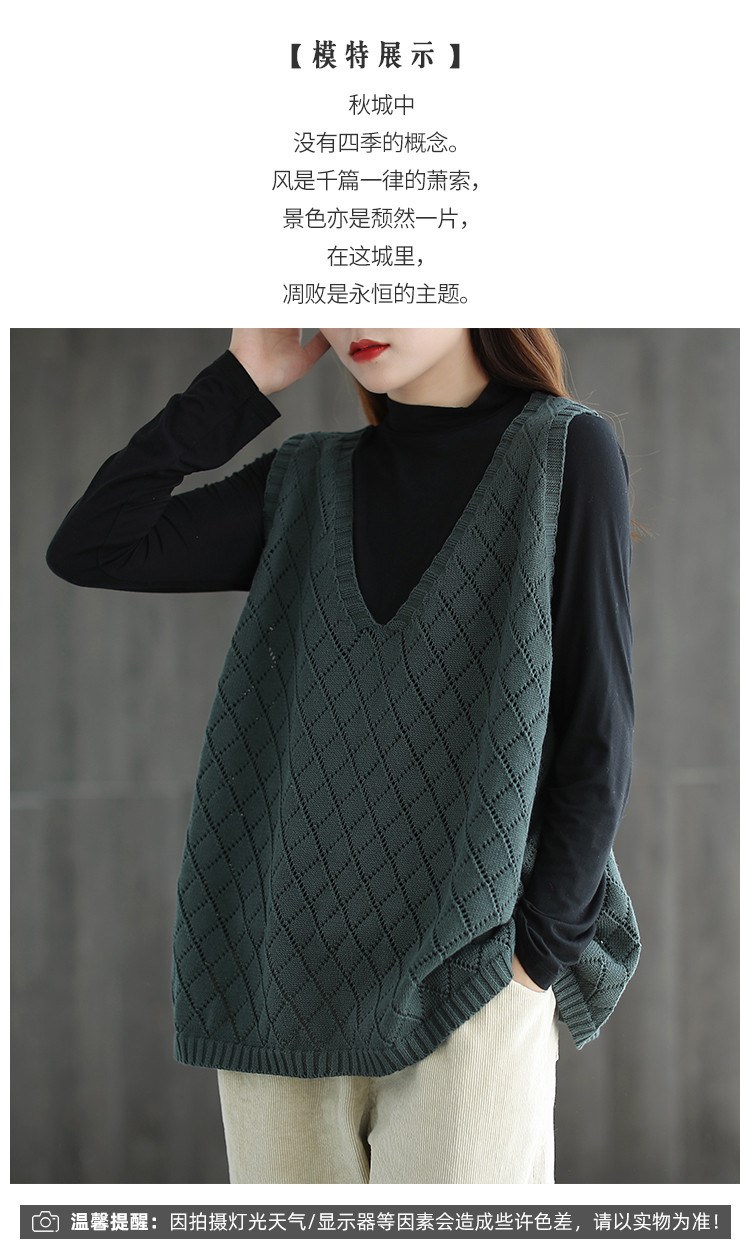 Трансграничная весна и осень свободная трикотажная жилета ретро литературный вентилятор с v-образным вырезом большого размера женский полый свитер жилет женский